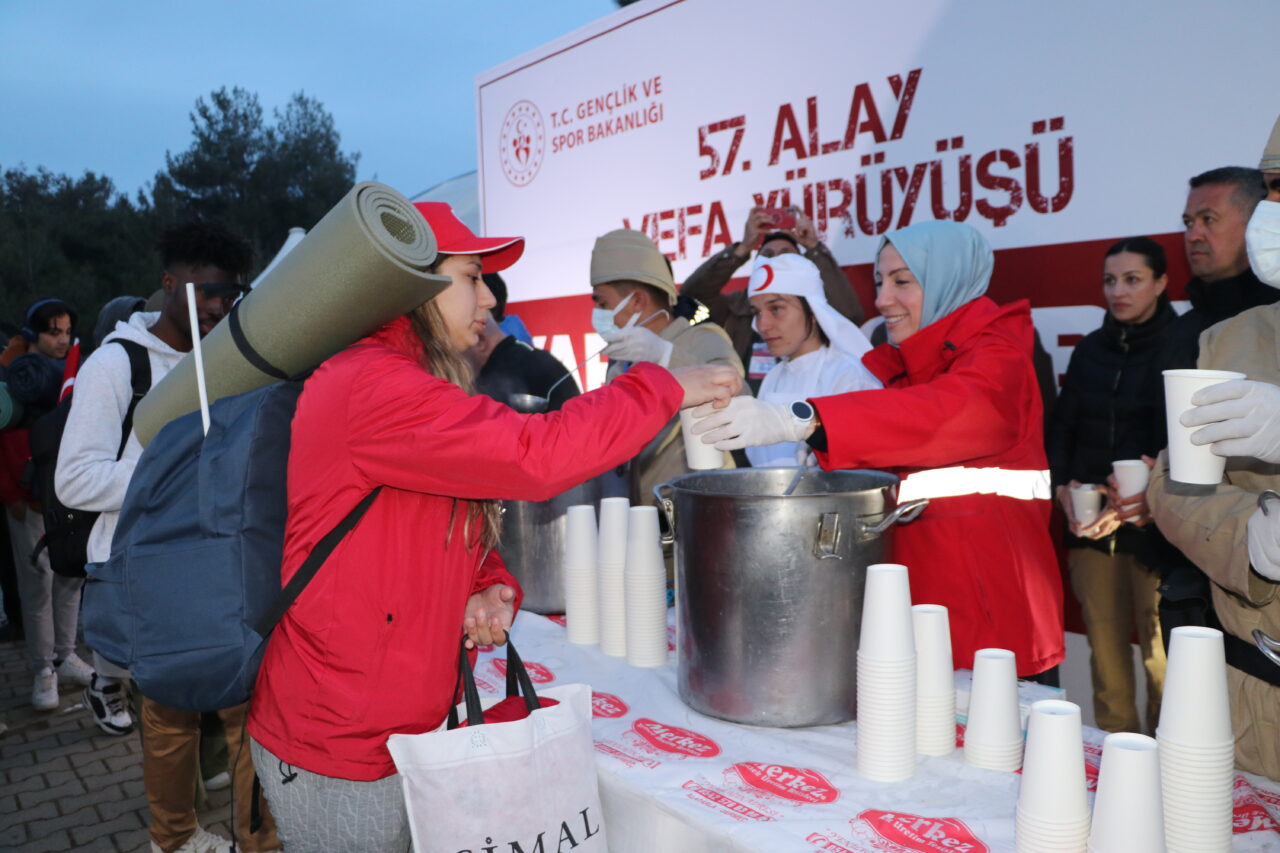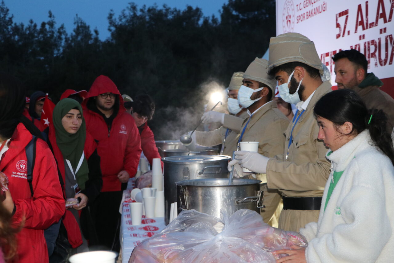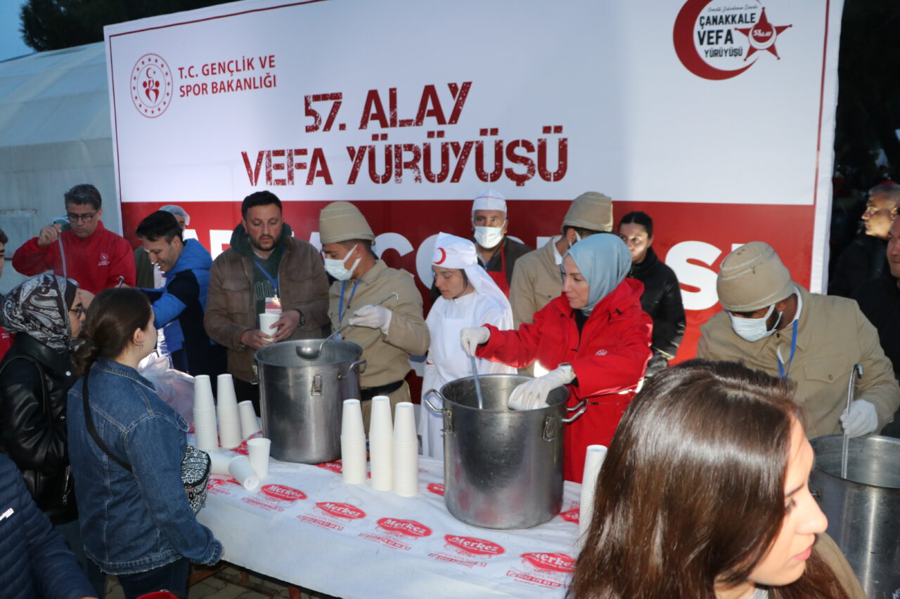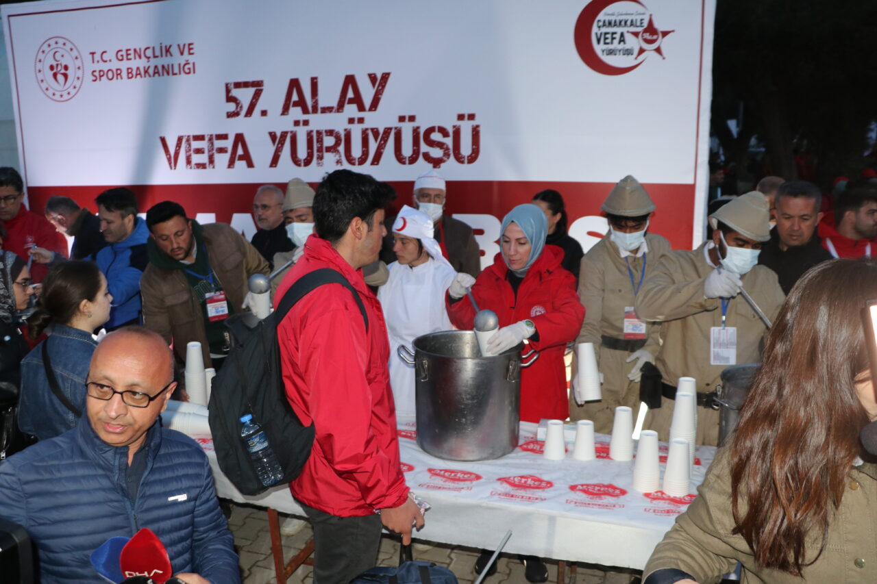 Tarihi Gelibolu Yarımadası’nda sabah ezanının okunmasıyla birlikte sabah namazı kılındı. Ardından, 57’nci Alay askerlerinin yemeği olan kırık buğday çorbası katılımcılara ikram edildi. Gençlik ve Spor Bakan Yardımcısı Safa Koçoğlu, etkinlikte yaptığı konuşmada, “Ecdadımızın izinde yürüyoruz. Tarih şuurunu geliştirmek adına buradayız” ifadelerini kullandı.