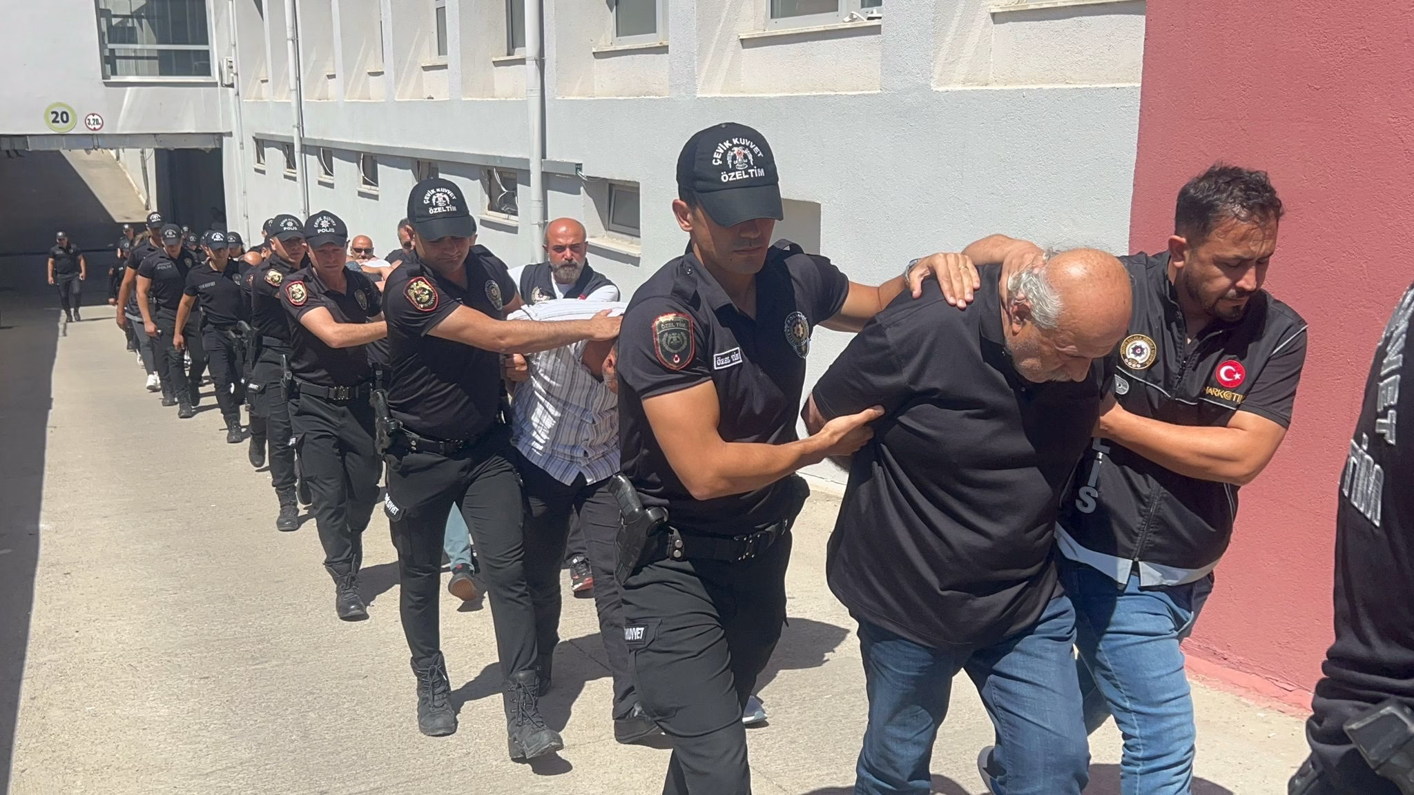 Adana Emniyet Müdürlüğü’nde sorgularının ardından nöbetçi mahkemeye sevk edilen şüphelilerden 16’sı tutuklanırken 15 adli kontrol şartıyla serbest bırakıldı. Yurt dışındaki Ş.I. hakkında da yakalama kararı çıkartıldı.