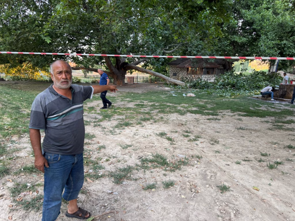 Ailesiyle piknik yaparken bir anda ağacın kırılan dalının üzerlerine düştüğünü söyleyen Vicdani Yıldız, “Mevsimlik işçi olarak Hatay’dan geldik. Burada bir şeyler yemek için oturduk. Ne olduğunu anlayamadık, bir anda üstümüze ağaç devrildi. Ailemden 11 kişi yaralandı. Aracım da hasar aldı, mağdur olduk” dedi.