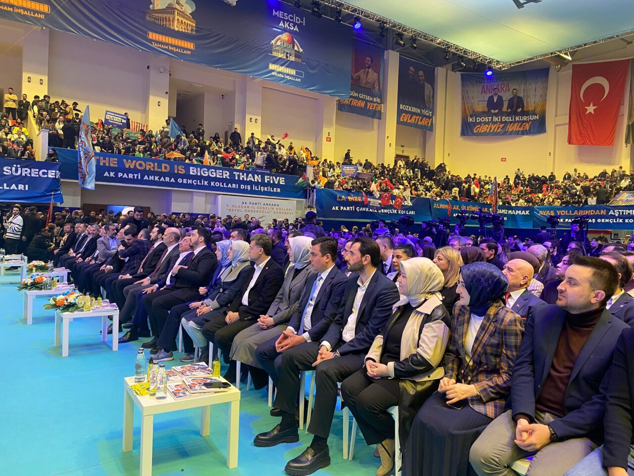 AK Parti Ankara Gençlik Kolları 7’nci Olağan ‘Betül Önderoğlu’ Kongresi, Sinan Şamil Sam Kapalı Spor Salonu’nda düzenlendi. Kongreye, İçişleri Bakanı Ali Yerlikaya, Cumhurbaşkanı eski Yardımcısı Fuat Oktay, AK Partili vekiller, parti belediye başkanları ve gençlik kolları üyeleri katıldı. Burada konuşan Bakan Yerlikaya, “Sizler, çeyrek asra dayanan kutlu bir davanın, apaydınlık geleceğisiniz. Sizler hepiniz, kalpleri ülkesinin istiklali ve istikbali için çarpan, Türkiye Yüzyılı gençliğisiniz. Gözlerinizdeki heyecan, yüreklerinizdeki kararlılık, bizim yarınlarımıza olan inancımızı, daha da güçlendiriyor. Zira, ‘Gençlerinden ümidi kesen bir millet, geleceğini de kaybetmiş demektir’ Biz, ne gençlerimizden ne de geleceğimizden vazgeçeriz. Bu kutlu yolda, sizlerle birlikteyiz ve sizlerle olmaya da devam edeceğiz. Çünkü bizim gençlerimiz, geçmişten geleceğe kurduğumuz o yıkılmaz köprünün, kilit taşlarıdır. Bizim medeniyetimizde gençlik, bir ruhtur. Bir iddiadır, bir idealdir” dedi.