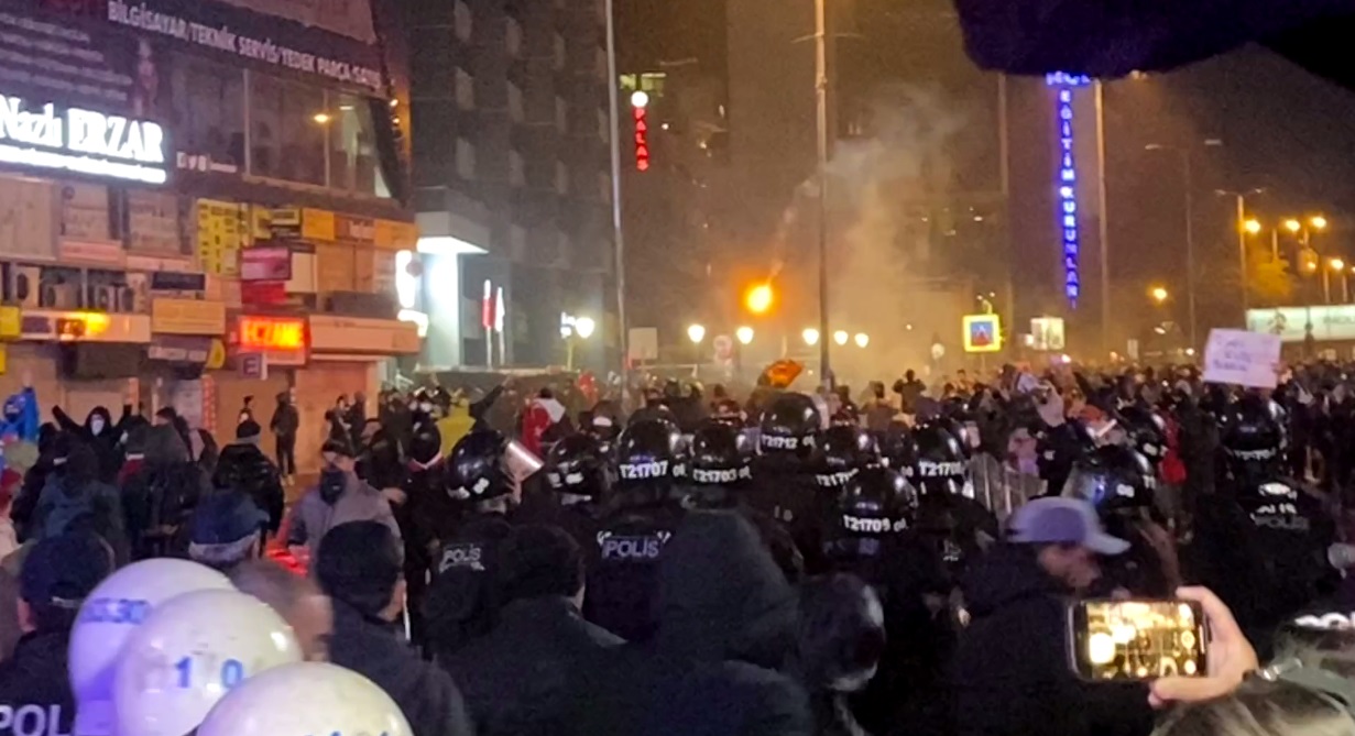 İBB Başkanı Ekrem İmamoğlu’nun tutuklanması, Ankara’da da protesto edildi. Kızılay’da CHP İl Başkanlığı önünde toplanan grup slogan atıp, pankart ve döviz taşıdı. Daha sonra Kızılay Meydanı’na çıkmak isteyen grup, kendilerini durdurmak isteyen polisle karşı karşıya geldi. Polis ekipleri TOMA ve bariyerlerle yoğun güvenlik önlemi alarak, grubun meydana çıkmasını engelledi. Polis, zaman zaman göstericilere dağılmaları yönünde uyarıda bulundu. Göstericiler ise polisin uyarısına taş ve su dolu pet şişelerle karşılık verdi. Polis, uyarıları dikkate almayan gruba TOMA ile su sıkarak müdahalede bulundu. Polisin müdahalesinin ardından grup dağılırken, çok sayıda gösterici gözaltına alındı.