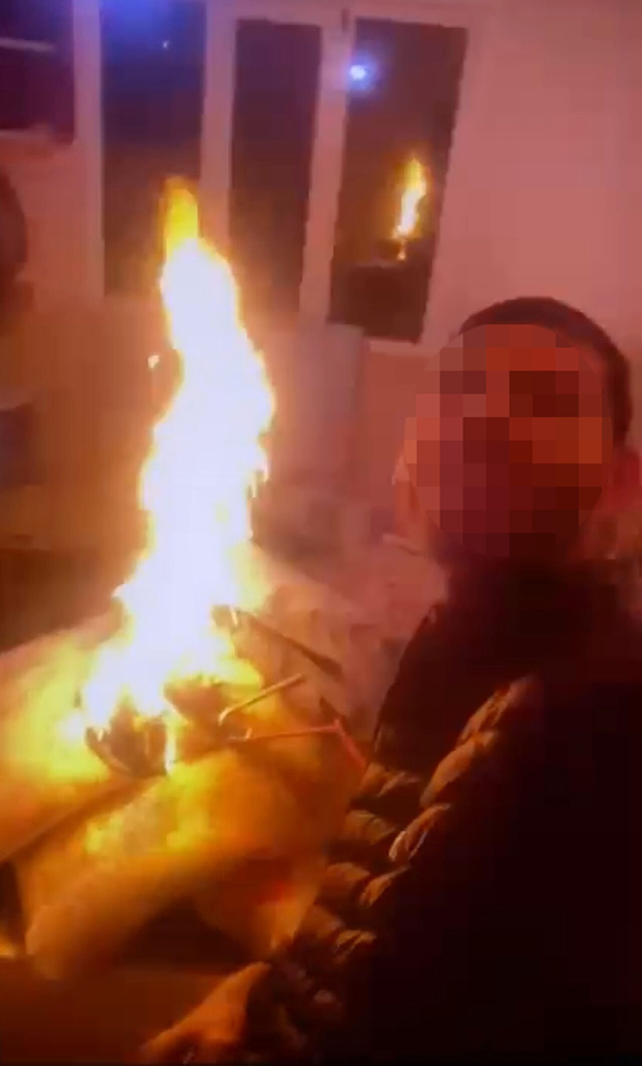 Canlı yayında “Hadi polis çağır, şimdi yakacağım” diyerek tehditler savuran S.Ö.’nün, “Bir tane eşya koymayacağım bu evde” sözlerinin ardından yangını çıkardığı, ardından “Vallahi çatır çatır da yanıyor” diyerek olayı yorumladığı görüntüler kısa sürede sosyal medyada gündem oldu.