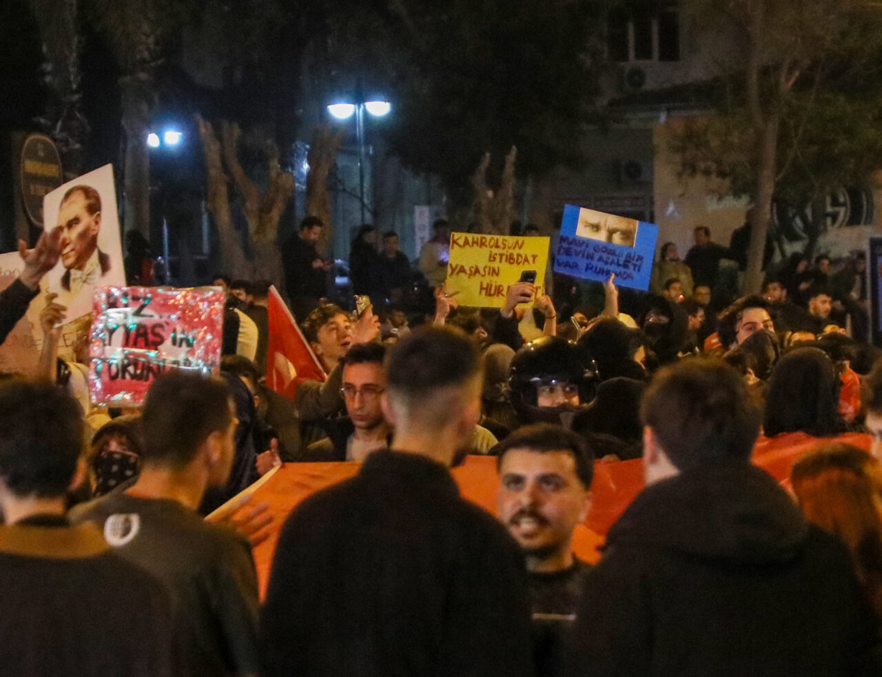 Antalya’da, İstanbul Büyükşehir Belediye (İBB) Başkanı Ekrem İmamoğlu’nun tutuklanmasını protesto eden göstericilerden biri, ekiplerle karşı karşıya gelmek istemediklerini söyleyerek, polisten isteyip aldığı megafonla duyuru yaptı.
