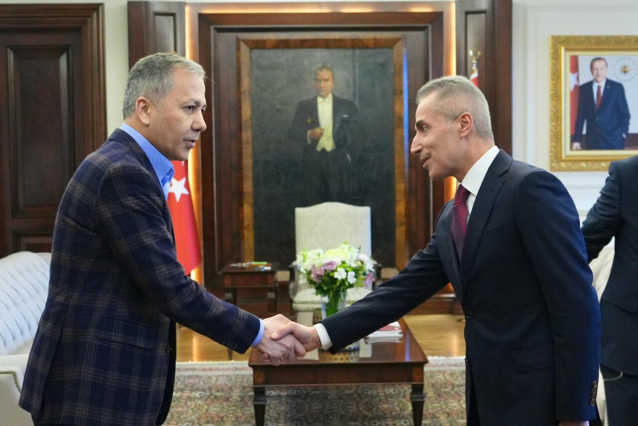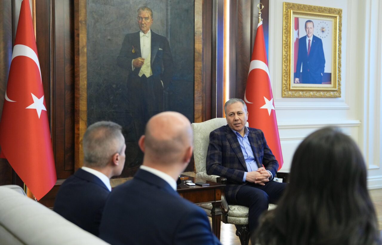 İçişleri Bakanı Ali Yerlikaya, Göç İdaresi Başkanlığı’nın kuruluşunun 12’nci yıl dönümünde Göç İdaresi Başkanı Hüseyin Kök ve Başkanlık personelini makamında kabul etti.