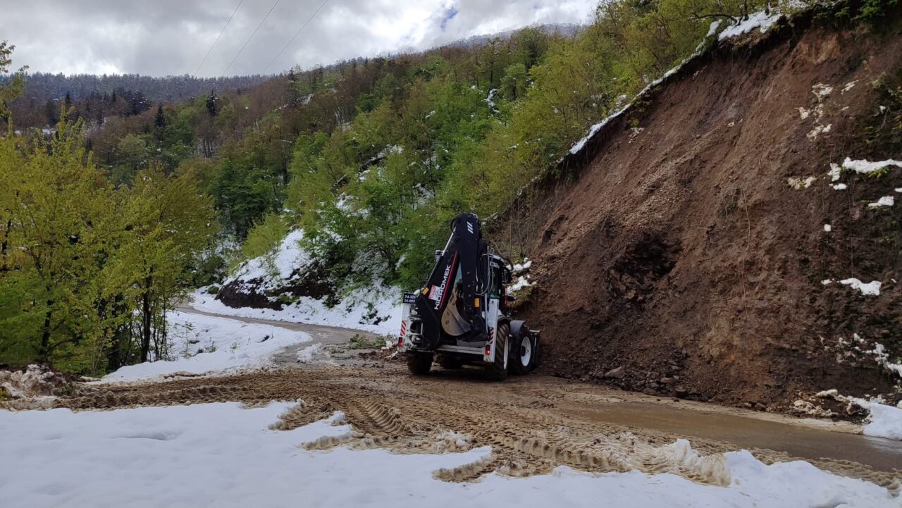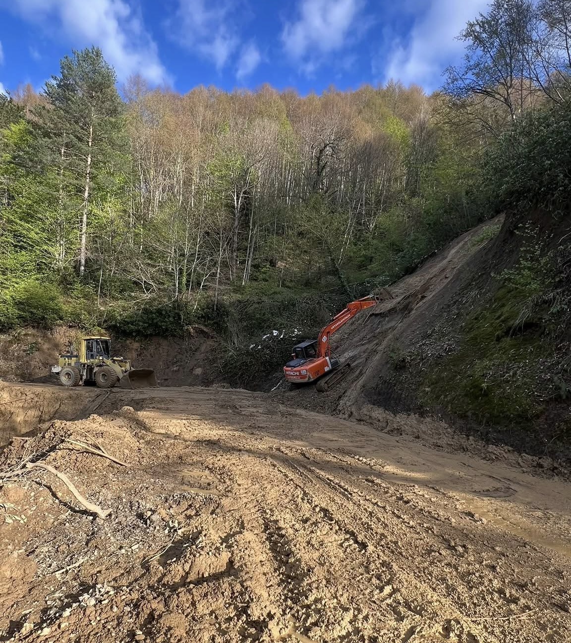 Heyelan nedeniyle kapanan yollar, ekiplerin müdahalesiyle yeniden ulaşıma açıldı.