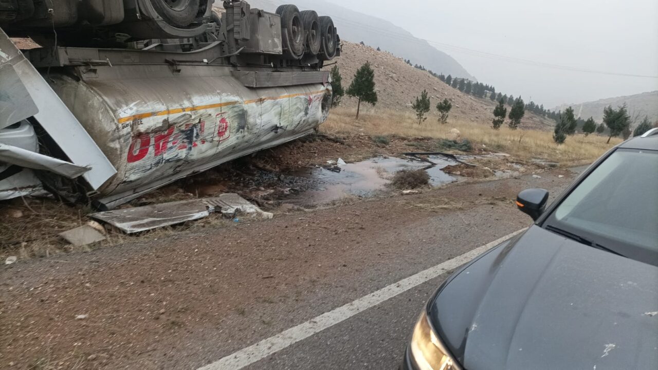 Batman’da kontrolden çıkan ve yol kenarına yuvarlanan tankerin şoförü yaralandı ve dökülen tonlarca ham petrol ise etrafa yayıldı.