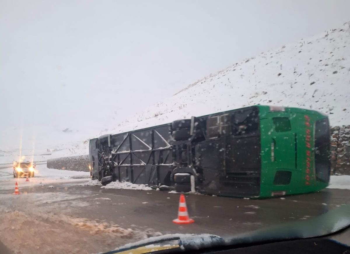 “Erzurum- Bingöl yolu Karlıova ilçesi Kümbet köyü mevkiinde personel dahil 23 yolcusuyla Çayeli Mersin seferini yapan bir seyahat firmasına ait yolcu otobüsü, saat 00:20 sularında kar yağışı ve buzlanma sebebiyle devrilmiş, maalesef 2 vatandaşımız vefat etmiştir. Yaralı 16 yolcumuzun tedavilerine Karlıova Devlet Hastanesinde başlanmış olup, durumlarına göre Bingöl Devlet Hastanesine nakledileceklerdir. Vefat eden vatandaşlarımıza Allahtan rahmet, kederli aileleri ve sevenlerine sabır ve başsağlığı, yaralılarımıza da acil şifalar diliyorum”
