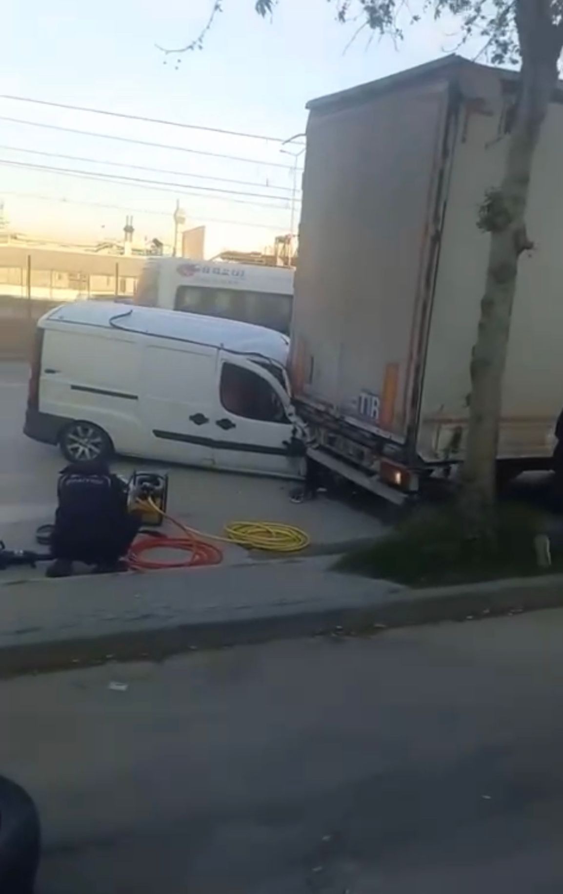 Bursa’nın Osmangazi ilçesinde, seyir halindeyken direksiyon hakimiyetini kaybeden hafif ticari araç sürücüsü, yol kenarına park edilmiş bir TIR’a arkadan çarptı. Kazada yaralanan sürücü, kendi çabasıyla araçtan çıkmayı başardı. O anlar çevredeki bir iş yerinin güvenlik kamerasına yansıdı.