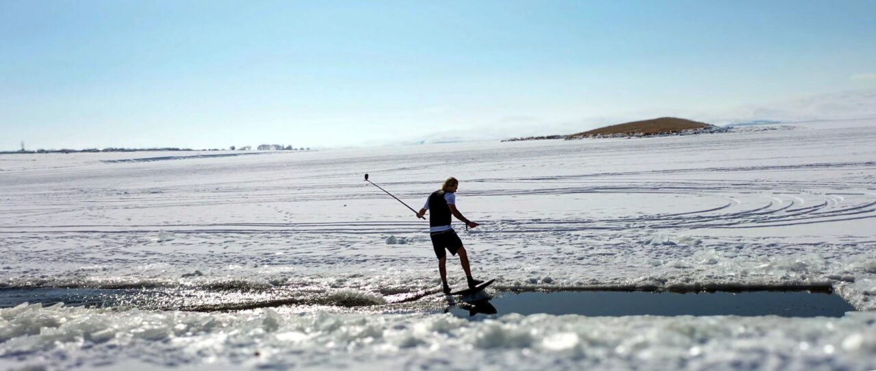 Kars Valiliği ve Serhat Kalkınma Ajansı’nın (SERKA) desteğiyle gerçekleştirilen etkinlikte, Türkiye Snowboard Şampiyonu Süleyman Atlı, buzla kaplı Çıldır Gölü’nde nefes kesen gösteri sergiledi. Süleyman Atlı, elektronik sörf tahtasıyla parkuru başarıyla tamamlayarak bir ilke imza attı.