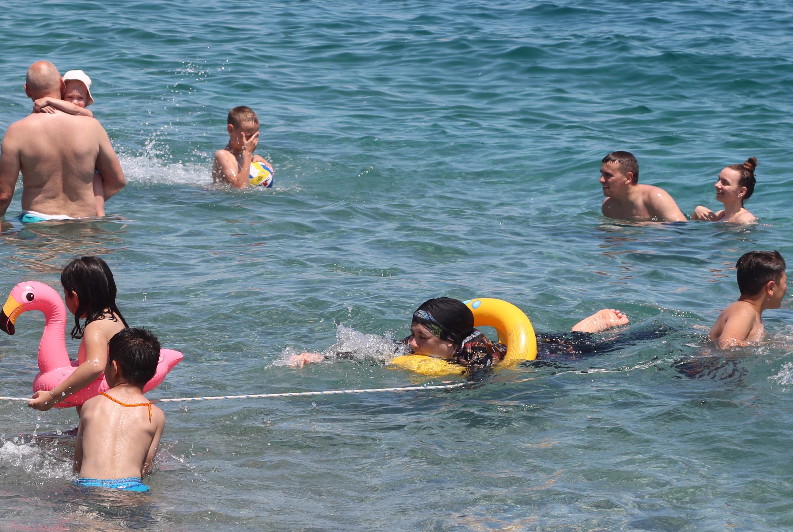 AÜ Tıp Fakültesi Dermatoloji Anabilim Dalı Öğretim Üyesi Prof. Dr. Ayşe Akman, güneş ışınlarının sert ve dik geldiği günlerde denize girerken dikkat edilmesi gerektiğini söyledi. Fotoğraf:Antalya, (DHA)
