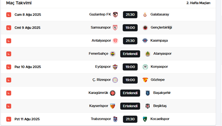 Süper Lig 2025-26 sezonu 8 Ağustos’ta Gaziantep FK – Galatasaray maçı ile başlıyor. İlk hafta maç programı, önemli karşılaşmalar ve yayın detayları haberimizde.