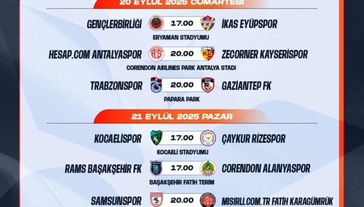 SÜPER Lig’de 5’nci ve 6’ncı hafta maç programı belli oldu. Türkiye Futbol Federasyonu’ndan (TFF) yapılan açıklamaya göre, 5’inci haftada Fenerbahçe ile Trabzonspor arasındaki karşılaşma 14 Eylül Pazar günü saat 20.00’de Chobani Stadyumu’nda oynanacak.