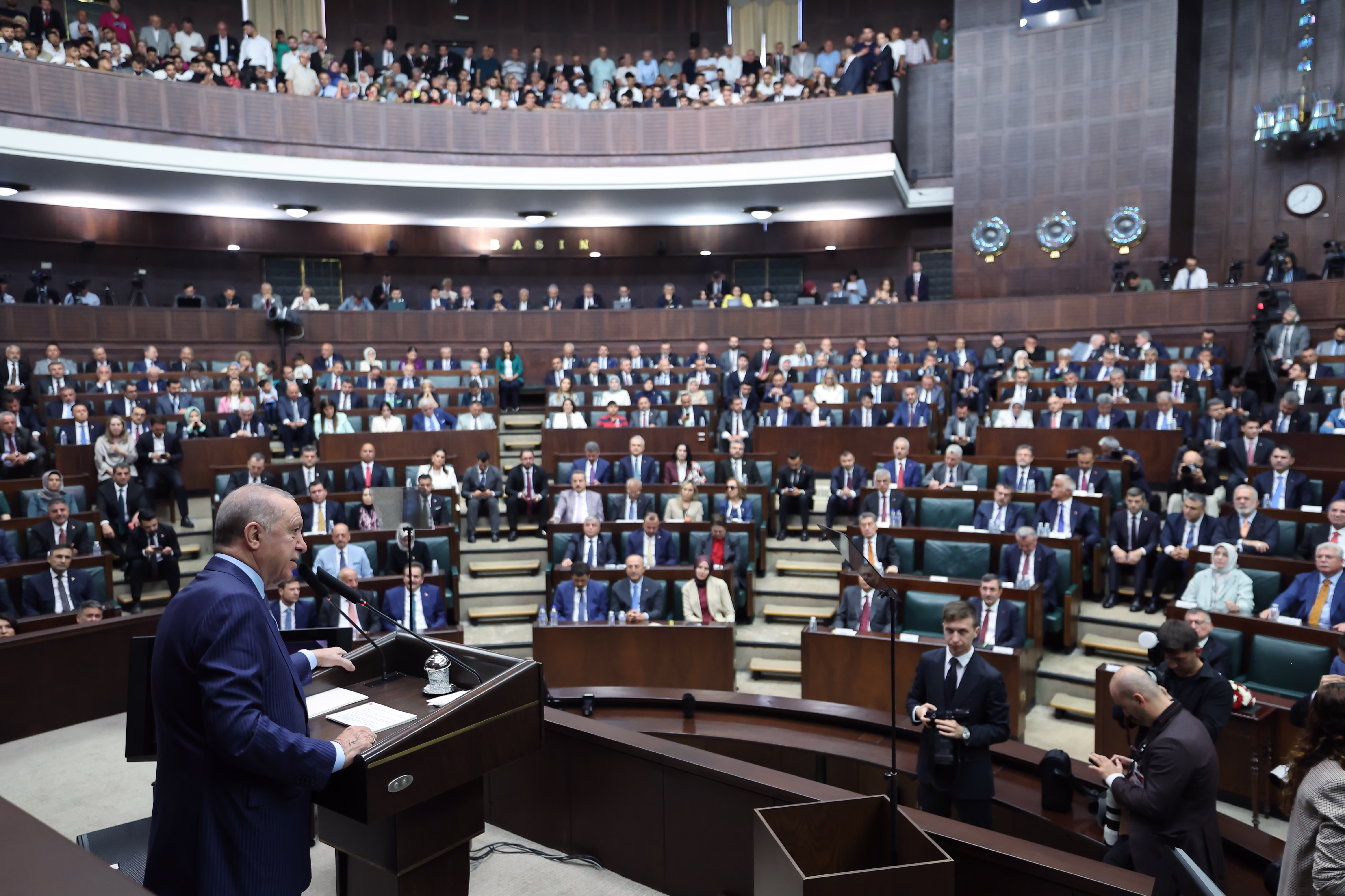 Cumhurbaşkanı ve AK Parti Genel Başkanı Recep Tayyip Erdoğan, TBMM’de partisinin grup toplantısında konuştu. Erdoğan, Pençe-Kilit Harekatı bölgesinde şehit olan 12 askerin ismini okuyarak, tek tek rahmet, tedavileri devam eden askerlere ise şifa diledi. Erdoğan, “Bu cennet vatanın, bu şanlı bayrağın bize kahraman şehitlerimizin ve gazilerimizin emaneti olduğunu hiçbir zaman unutmadık ve unutmayacağız. İnşallah önce ‘Terörsüz Türkiye’, ardından ‘Terörsüz Bölge’ hedefimize ulaşarak şehitlerimizin ruhlarını şad edecek, onların fedakarlıklarının boşa gitmediğini dost-düşman herkese göstereceğiz” dedi.