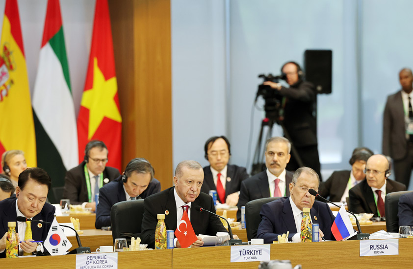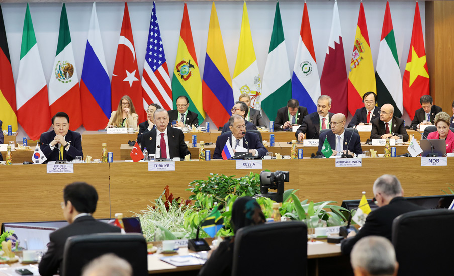 Cumhurbaşkanı Erdoğan, bugün bir yandan bu küresel ittifakı kurarken, diğer yandan da Gazze başta olmak üzere Orta Doğu, Afrika ve Asya’daki çatışmalarda hayatları altüst olan sivillerin kaderleriyle baş başa bırakılmaması gerektiğinin altını çizerek şunları kaydetti: