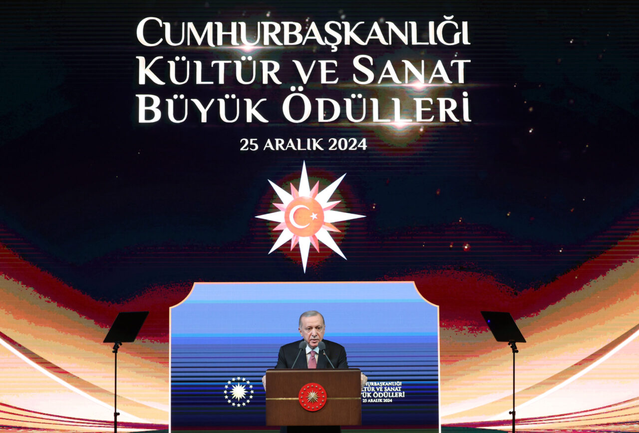 “Atalarımız şu veciz cümleyi; ilim, fikir ve sanat dünyamıza adeta hediye etmiştir; ‘Kem alat ile kemalat olmaz.’ Siyasette, iş hayatında, eğitimde, aile ve sosyal yaşantımızda rehber edinmemiz gereken bu sözü pek tabii kültür ve sanat faaliyetlerimizde de kılavuz olarak belirlemek önem arz ediyor. Şu hususu sizler de çok iyi biliyor, görüyor, tecrübe ediyorsunuz. Vasat malzemeden kaliteli iş asla çıkmaz. Biz elhamdülillah bu açıdan nasipli bir milletiz. Yalnızca ülkemizin değil, gönül coğrafyamızın her bir köşesi Türk ve İslam medeniyetinden neşet eden kültür hazinesiyle, mümtaz eserlerle, önder şahsiyetlerle dolu. Müzikte, mimaride, edebiyatta, bilim, kültür ve sanatın pek çok branşında asırlar boyunca ortaya koyduğumuz eserlerle bünyemizden çıkardığımız ilim ve kültür insanlarıyla güçlü bir medeniyetin devamıyız. Bugünkü gençlerimizin asla unutmaması gereken hususlardan biri de işte bu medeniyetin daha üç asır öncesine kadar ilim ve sanatta diğer milletlere ilham veren örnek işlere imza atmış olmasıdır. Bilim ve kültür erbabımızın çalışmalarıyla bu mirası ihya etmek, zenginleştirmek ve geleceği çok güçlü bir şekilde kucaklamak zorundayız. Bu noktada her birimize önemli vazifeler düşüyor. İçine sirayet ettiği her bünyeyi tektipleştiren neoliberal kültür akımlarının ve dijitalleşmenin tüm dünyada olduğu gibi ülkemizde de etkisini artırdığını görüyoruz. Bunun için, tarihten süzülüp gelen gelenekli sanatlarımızı muhafaza etmeli, ilmi ve kültürel çalışmalarımızı günümüzün sunduğu imkanlarla çok daha ileri noktalara taşımalıyız. ‘Marifet iltifata tabidir’ düsturuyla düzenlediğimiz Cumhurbaşkanlığı Kültür ve Sanat Büyük Ödüllerimizi işte bu amaç doğrultusunda geçmişten aldığımız ışıkla geleceği aydınlatmak üzere icra ediyoruz.”