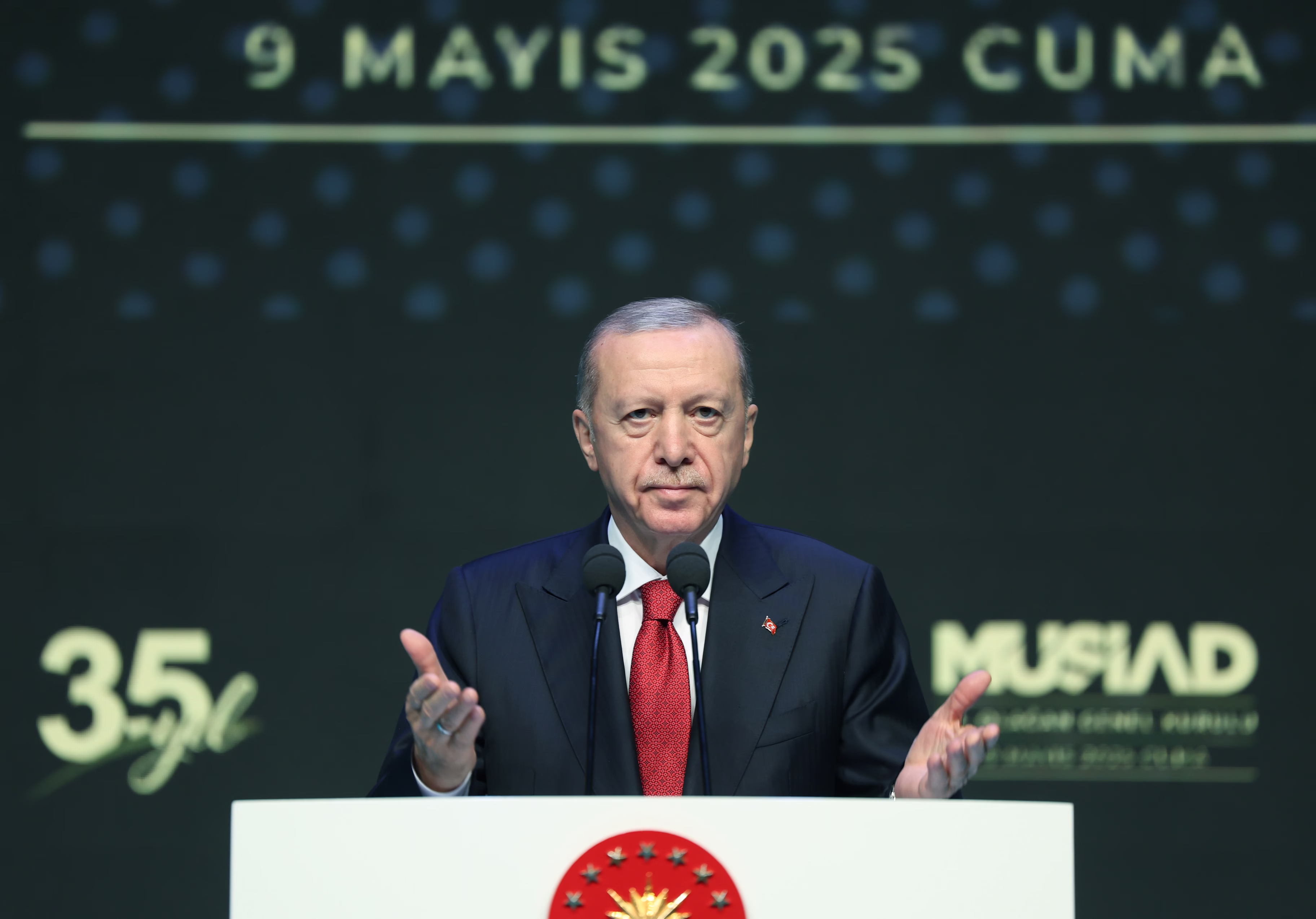 Cumhurbaşkanı Recep Tayyip Erdoğan, Haliç Kongre Merkezi'nde gerçekleşen MÜSİAD 28. Olağan Genel Kurulu'na katıldı. (DHA)