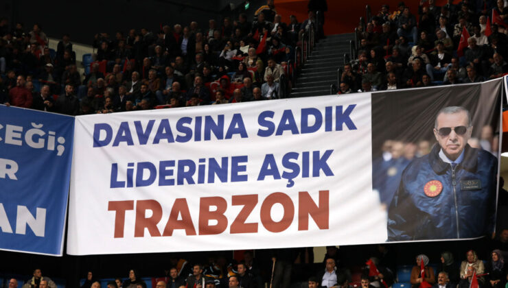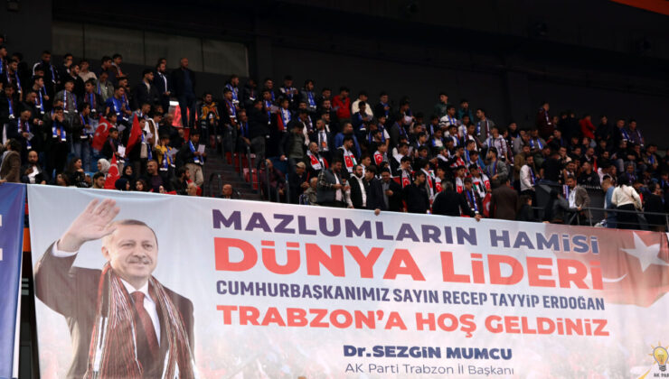 Cumhurbaşkanı Recep Tayyip Erdoğan, Trabzon’da yapımı tamamlanan tesis ve projelerin toplu açılış törenine katıldı. Hayri Gür Spor Salonu’ndaki törene Çevre, Şehircilik ve İklim Değişikliği Bakanı Murat Kurum, Gençlik ve Spor Bakanı Osman Aşkın Bak, İçişleri Bakanı Ali Yerlikaya, Sağlık Bakanı Kemal Memişoğlu, Tarım ve Orman Bakanı İbrahim Yumaklı, Ulaştırma ve Altyapı Bakanı Abdulkadir Uraloğlu, Kültür ve Turizm Bakanı Mehmet Nuri Ersoy, belediye başkanları, partililer ile çok sayıda kişi katıldı. Salonda ‘Kadın üretiyor reis destekliyor’, ‘Sevmeye bir ömrün yetmeyeceği özü bir, sözü bir, gönlü bir Recep Tayyip Erdoğan’, ‘Davasına sadık liderine aşık Trabzon’, ‘Kimsesizlerin kimsesi, mazlumların gür sesi’, ‘Sana olan sevgimiz anne-baba, vatan sevgisi gibidir değişmez reis’, ‘Bir bordoya bir maviye bir de sana hastayız reis’, ‘Eser ve hizmet siyaseti ile geleceğe yürüyoruz’, ‘Mazlumların hamisi dünya lideri’, ‘Gazze, Gazzeli kardeşlerimizindir, ebediyen de öyle kalacaktır’, ‘Dünyanın sustuğu yerde Türkiye konuştu’ şeklinde pankartlar asılması dikkat çekti.