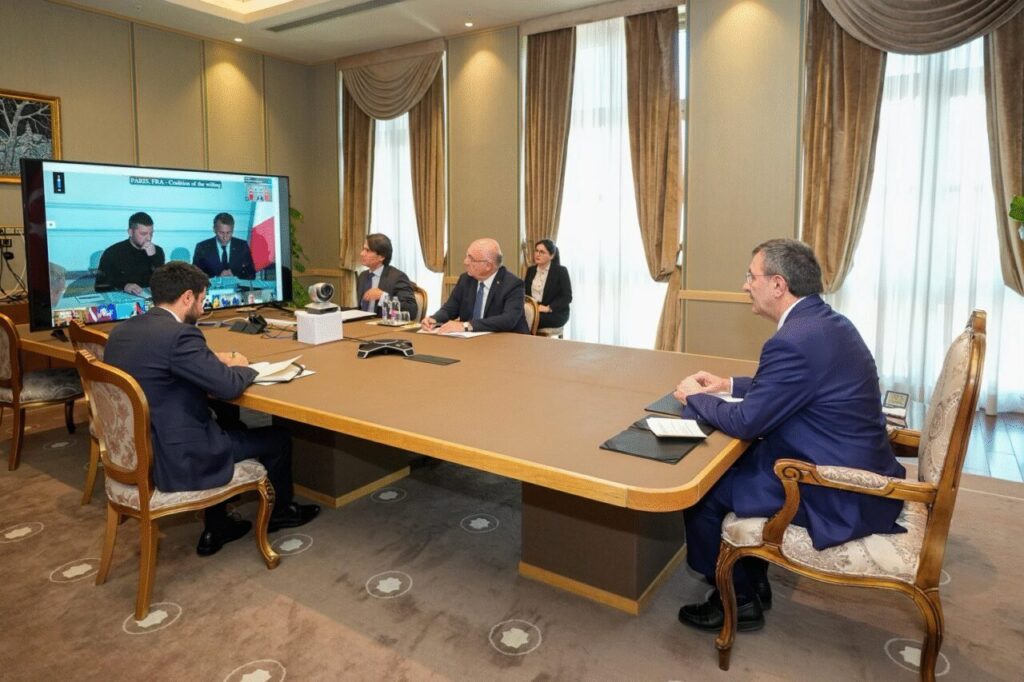 Cumhurbaşkanı Yardımcısı Cevdet Yılmaz, NSosyal hesabından yaptığı açıklamada, “Cumhurbaşkanımız Sayın Recep Tayyip Erdoğan’ı temsilen, daha önce dört kez iştirak ettiğim ‘Gönüllüler Koalisyonu Liderler Zirvesi’nin bugün beşincisine çevrim içi olarak katıldım. Fransa Cumhurbaşkanı Sayın Emmanuel Macron’un ev sahipliğinde hibrit formatta gerçekleşen toplantıda, ABD Başkanı Sayın Trump’ın aldığı inisiyatif sonrasında Ukrayna’da adil ve kalıcı barışın sağlanması için diplomatik çabalar ele alındı. Türkiye olarak, kalıcı barışın tesisi için her alanda öncü rol üstlenmeye hazır olduğumuzu, taraflar arasında diplomasi ve diyalogun öncelenmesi gerektiğini bir kez daha yineliyoruz. Adil ve kalıcı barış sağlanıncaya kadar, tüm imkanlarımızla diplomatik sürece katkı sunmaya devam edeceğiz” ifadelerini kullandı. (DHA)