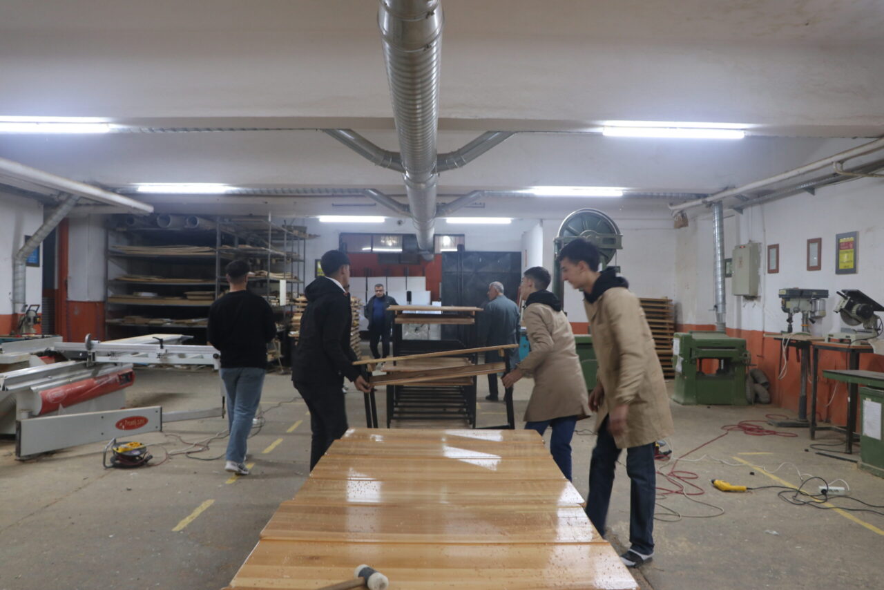 Öğrencileri ana kalifiyeli elaman olarak da yetiştirdiklerini belirten Mobilya İç Mekan Tasarım Alanı Bölüm Şefi Öğretmeni Fatin Ak ise “Biz burada öğrencilerimizi mobilyacı olarak ana kalifiye elemanı olarak yetiştiriyoruz. Ham madde olarak almış olduğumuz bütün malzemeleri burada onlara göstererek birlikte üretim yapıyoruz. Her türlü mobilya üretimi yapabiliyoruz. Malzemeleri ihtiyacımız dahilinde sanayiden temin etmekteyiz. Şu ana kadar 400 masa ve sıra ürettik” ifadelerini kullandı.