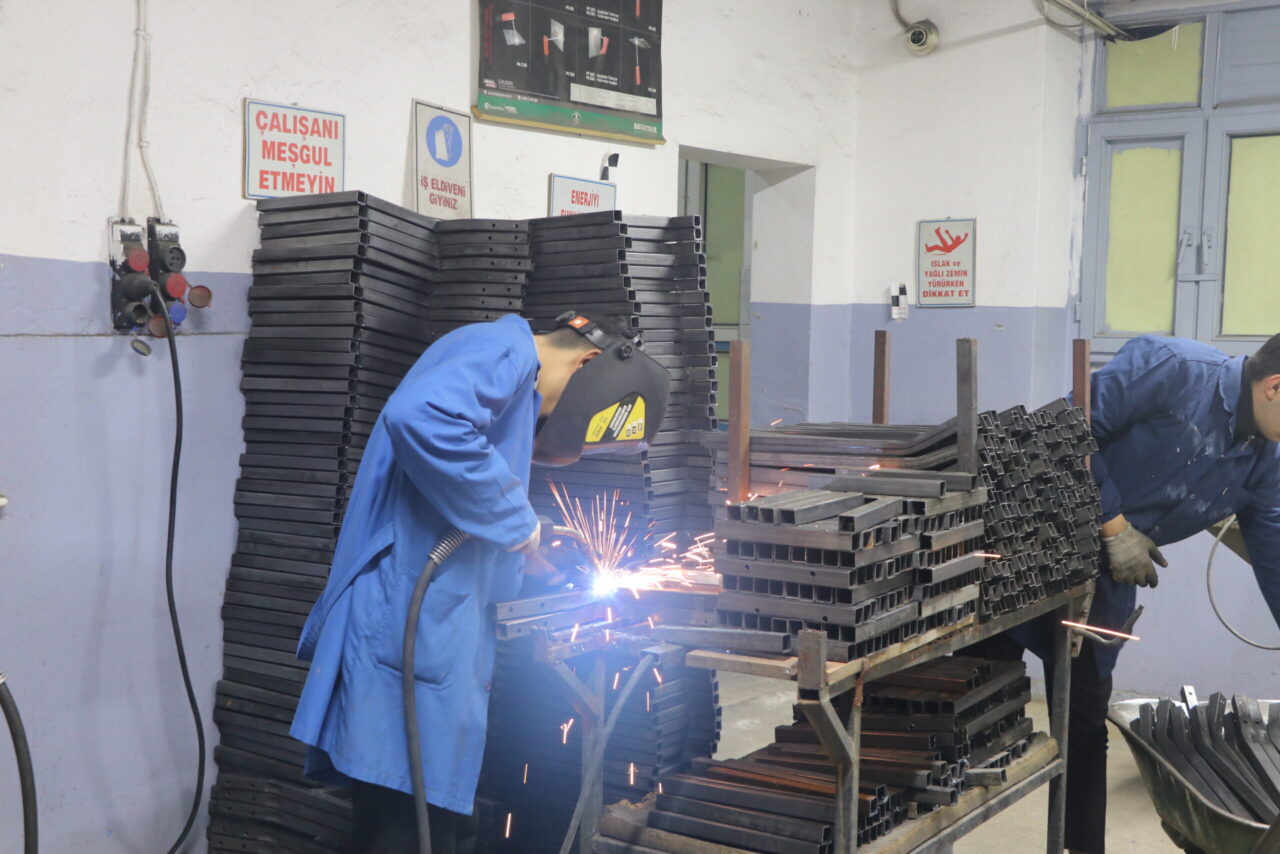 Metal Teknolojisi 11’inci sınıf öğrencisi Mahmut Can Yılmaz ise burada mesleklerini geliştirdiklerini söyleyerek, “Aileme katkı için döner sermayede çalışıyoruz. Burada hem öğreniyoruz hem de çalışıyoruz. Burada güzel ve önlemli bir iş ortamımız var. Burada kendi mesleğimizi geliştirmeye çalışıyoruz. Biz burada kaynak işi yapıyoruz. Burada masa, sıra ayakları, sandalye arkalarının metal kısmını biz burada yapıyoruz” dedi.