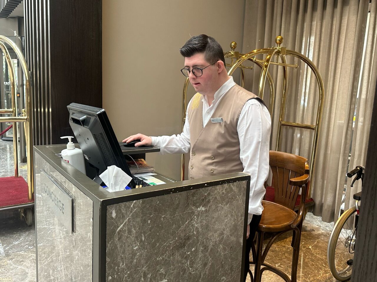 Baran Turan, “10 yıl kadar İtalyan mutfağında komi elemanı olarak çalıştım. Sonra iş değiştirmek istedim ve buraya bellboy olarak geçtim. Türkiye Down Sendromu Derneği bana burayı önerdi. Sevgili iş koçum Ayşenur Hanım, buradaki gelişmemi 2 hafta kadar takip etti. Burada çok mutluyum. İş arkadaşlarımla çok mutluyum. En büyük hayalim, burada bir kariyer sahibi olmak ve kendi ayaklarımın üzerinde durmaktır” dedi. Down Sendromu Derneği Ankara Temsilcisi Güneş Yılmaz ise istihdam eğitimleri sayesinde Down sendromluların iş hayatında yer alabileceğini ifade ederek, “Baran, ‘İş Koçu Destekli İstihdam Programı’ ile burada çalışmaya başladı. İşinden ve çalışma ortamından gayet memnun. Program sayesinden diğer Down sendromlular da istihdam edilerek çalışma hayatlarına entegre olabilirler” diye konuştu.