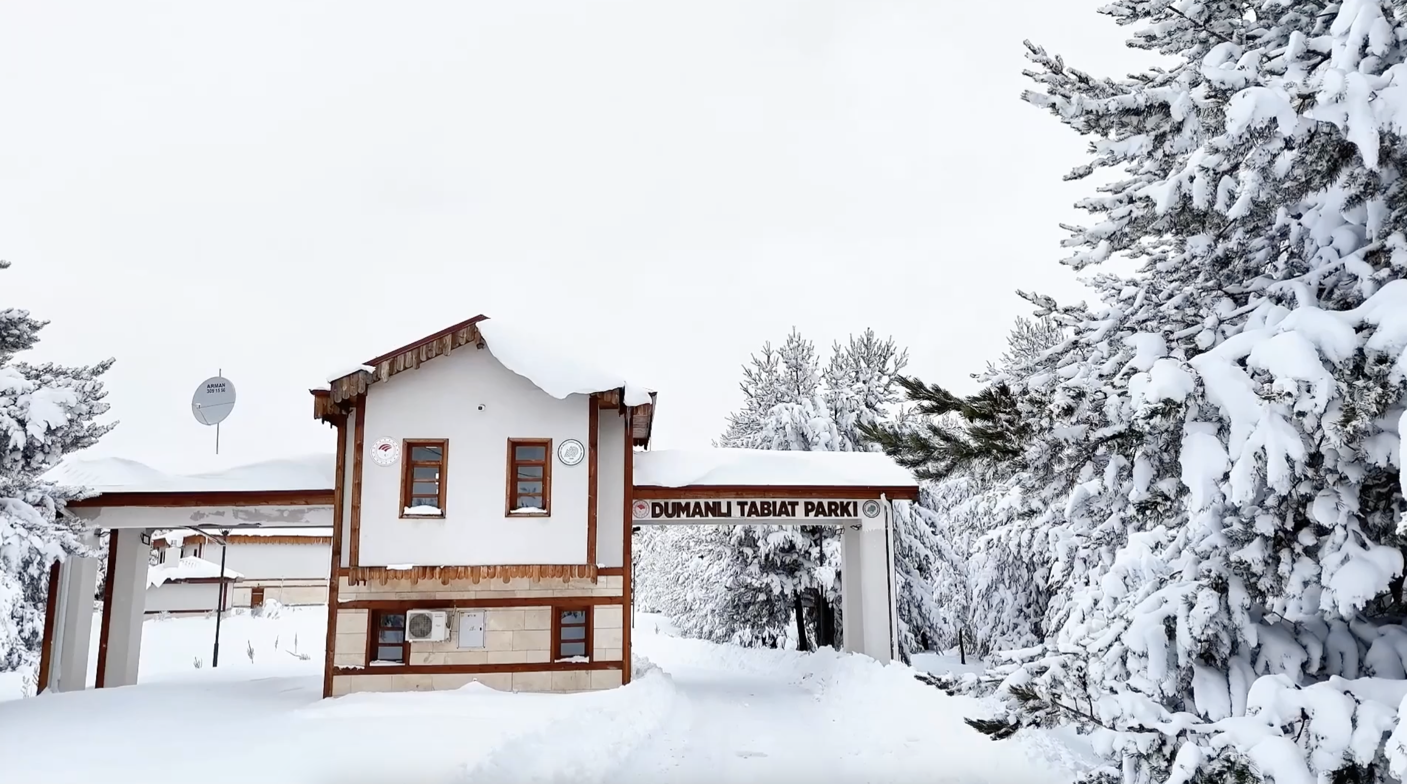 Refahiye ilçesine 7 kilometre uzaklıktaki, etrafı yüzlerce çam ağacıyla çevrili Dumanlı Tabiat Parkı’nda, kar kalınlığı 1 metreye ulaştı. Deniz seviyesinden 2000 metre yüksekte olan ve yazın yeşilin birçok tonunu barındıran tabiat parkında, kar yağışının ardından güzel görüntüler oluştu. Her mevsim ayrı bir güzelliğe sahip olan parkın karla kaplı hali, dronla görüntülendi. Hava sıcaklığının sıfırın altında 18 dereceye kadar düştüğü parkta oluşan sarkıtlar, ayrı bir güzellik oluşturdu. Yaz aylarında yerli ve yabancı birçok turistin gezmeye geldiği park, kar yağışından sonra da davetlilerini ağırlıyor. (DHA)