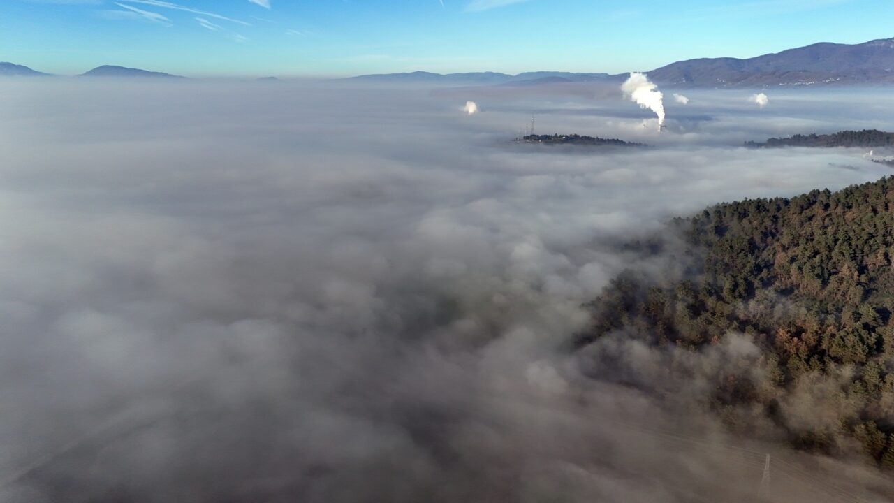 DÜZCE’de sabah saatlerinden itibaren etkili olan sis nedeniyle kent merkezi sisle kaplandı. Kent, sisli havada dronla görüntülendi.