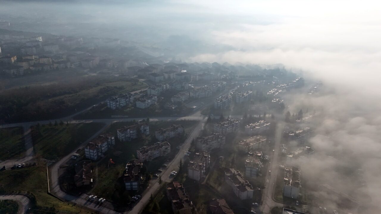 Coğrafi yapısı nedeniyle dağların arasında ve çukurda kalan Düzce kent merkezinde sis etkili oldu. Sabah saatlerinden itibaren kenti kaplayan sis nedeniyle sürücülerde yavaş ilerlemek zorunda kaldı. Kent merkezi, sisli havada dronla görüntülendi.