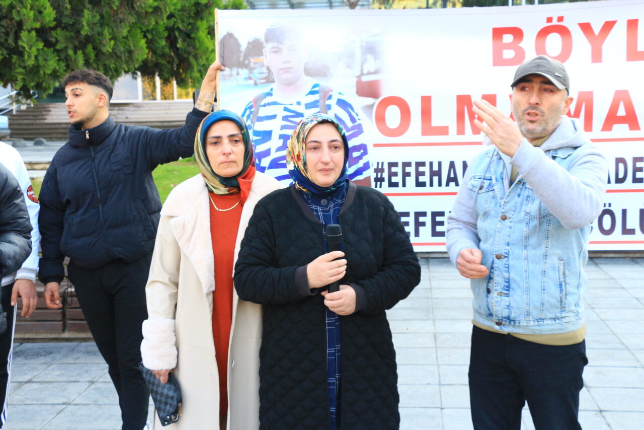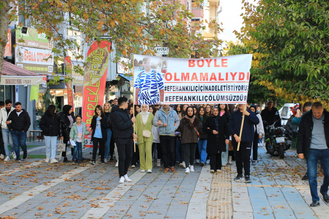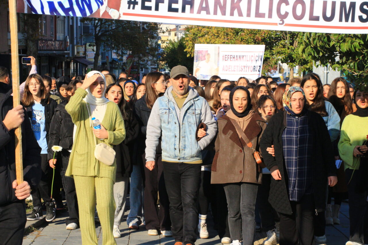 Efehan Kılıç’ın ailesi ve yaklaşık 250 kişi, kararı protesto etmek için bugün yürüyüş düzenledi. Ertuğrul Gazi Mahallesi’nden Cumhuriyet Meydanı’na kadar düzenlenen yürüyüşe, Efehan’ın babası Ahmet Kılıç (49) annesi Özlem Kılıç (39) ile çok sayıda kişi katıldı. ‘Efehan Kılıç için adalet’, ‘Böyle olmamalıydı’ yazılı dövizler taşıyan kalabalık, ‘Adalet sadece duvardaki yazı mı?’ ‘Efehan için adalet istiyoruz’ gibi sloganlar attı.