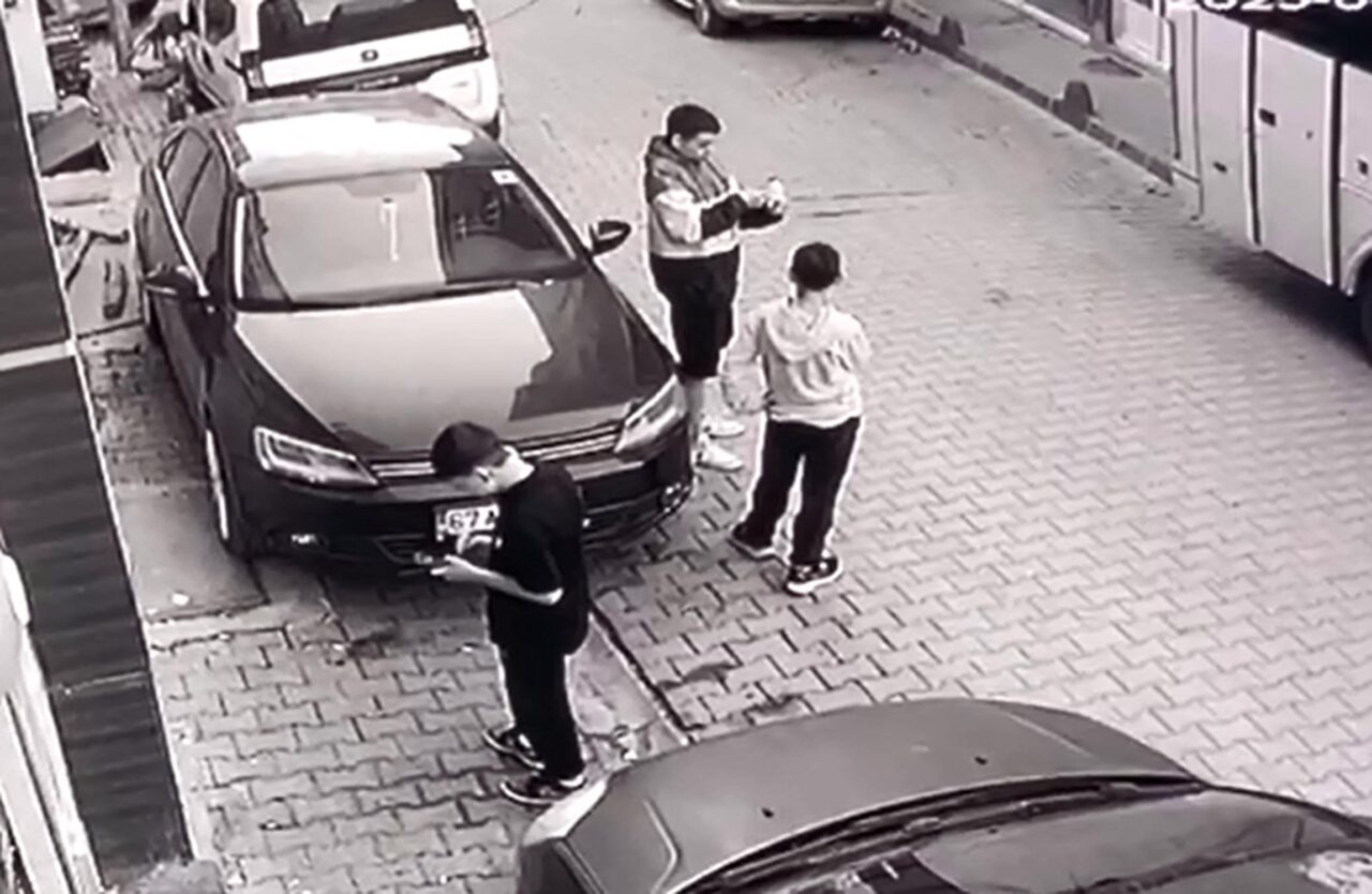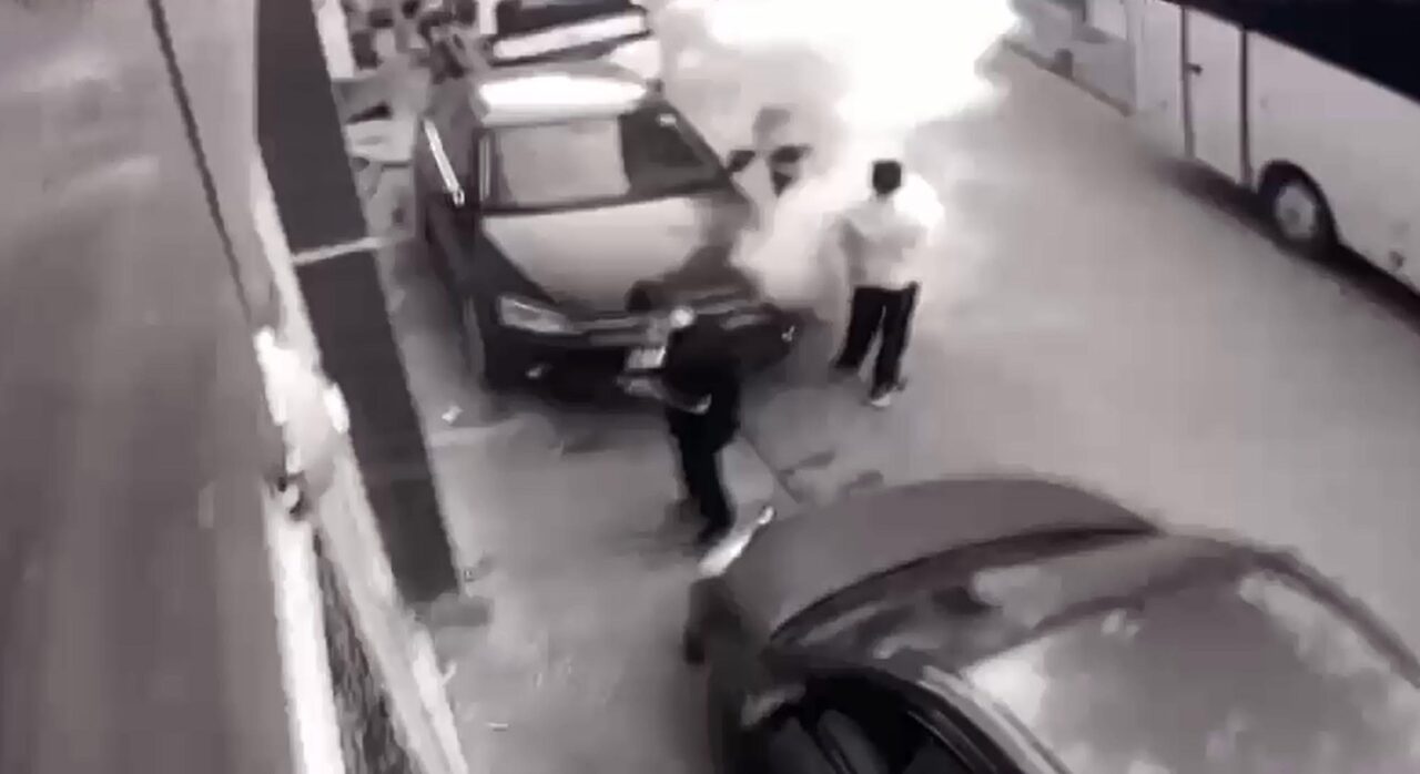 Öte yandan, olay anı çevredeki bir güvenlik kamerası tarafından kaydedildi.(DHA)