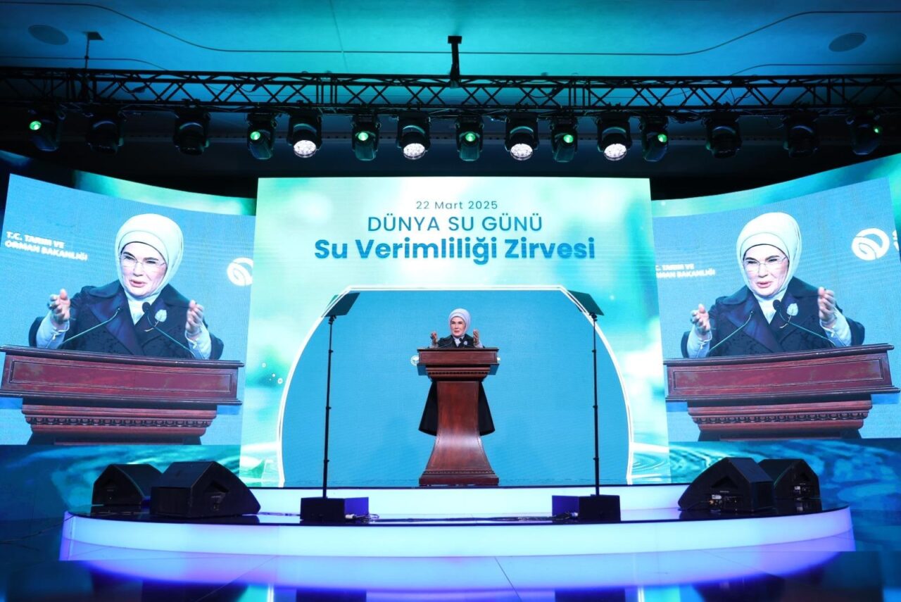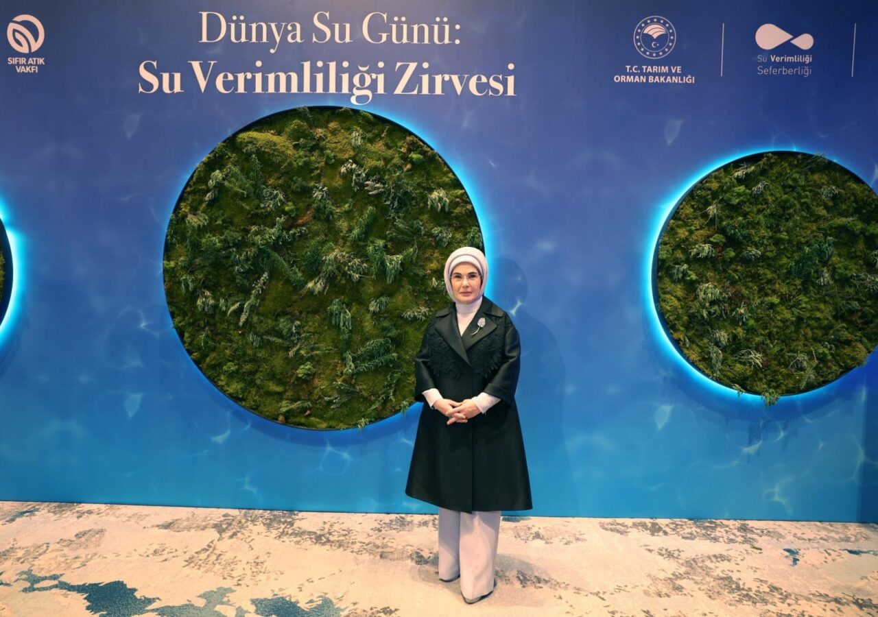BİRLEŞMİŞ Milletler (BM) Sıfır Atık Yüksek Düzeyli Şahsiyetler Danışma Kurulu Başkanı Emine Erdoğan, Tarım ve Orman Bakanlığı ve Sıfır Atık Vakfı tarafından İstanbul’da düzenlenen ’22 Mart Dünya Su Günü: Su Verimliliği Zirvesi’ne katıldı. Programa Emine Erdoğan’ın yanı sıra Tarım ve Orman Bakanı İbrahim Yumaklı, Ulaştırma ve Altyapı Bakanı Abdulkadir Uraloğlu, Milli Eğitim Bakanı Yusuf Tekin, Milli Savunma Bakanı Yaşar Güler, Gençlik ve Spor Bakanı Osman Aşkın Bak, Diyanet İşleri Başkanı Ali Erbaş ve YÖK Başkanı Erol Özvar valiler ve uluslararası STK temsilcileri katıldı.