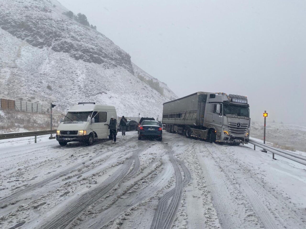 ERZİNCAN, – Erzincan-Sivas karayolunun Kızıldağ mevkisinde sabah saatlerinde başlayan kar yağışı, sürücüleri hazırlıksız yakaladı. Bölgede etkili olan yağmurun ardından bastıran kar, özellikle yüksek kesimlerde ulaşımda aksamalara yol açtı.