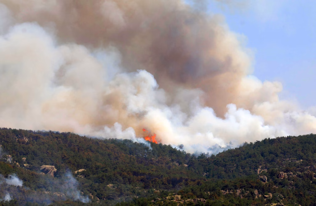 Alevlerin tehdidi altındaki Sarıcaova köyü, tedbir amaçlı boşaltıldı. Yangına havadan ve karadan müdahale eden ekipler, alevlerin yerleşim alanlarına ulaşmaması ve söndürme çalışmasının kolaylaşması için iş makineleriyle ağaçları kesip, orman içerisinde yol açtı. Gökyüzünü saran duman güneşin görünmesini engelledi. (DHA)