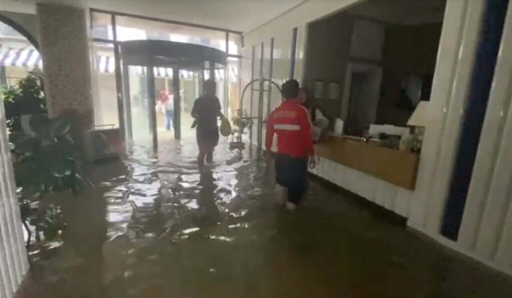 Sağanak yağış, ilçedeki günlük yaşamı da felç etti. Cumhuriyet Mahallesi’nde bir otelin giriş katını su basarken, turistler otelde mahsur kaldı. Çalışanların yardımıyla güvenli bölgelere taşınan turistler, uzun süre otelden çıkamadı.