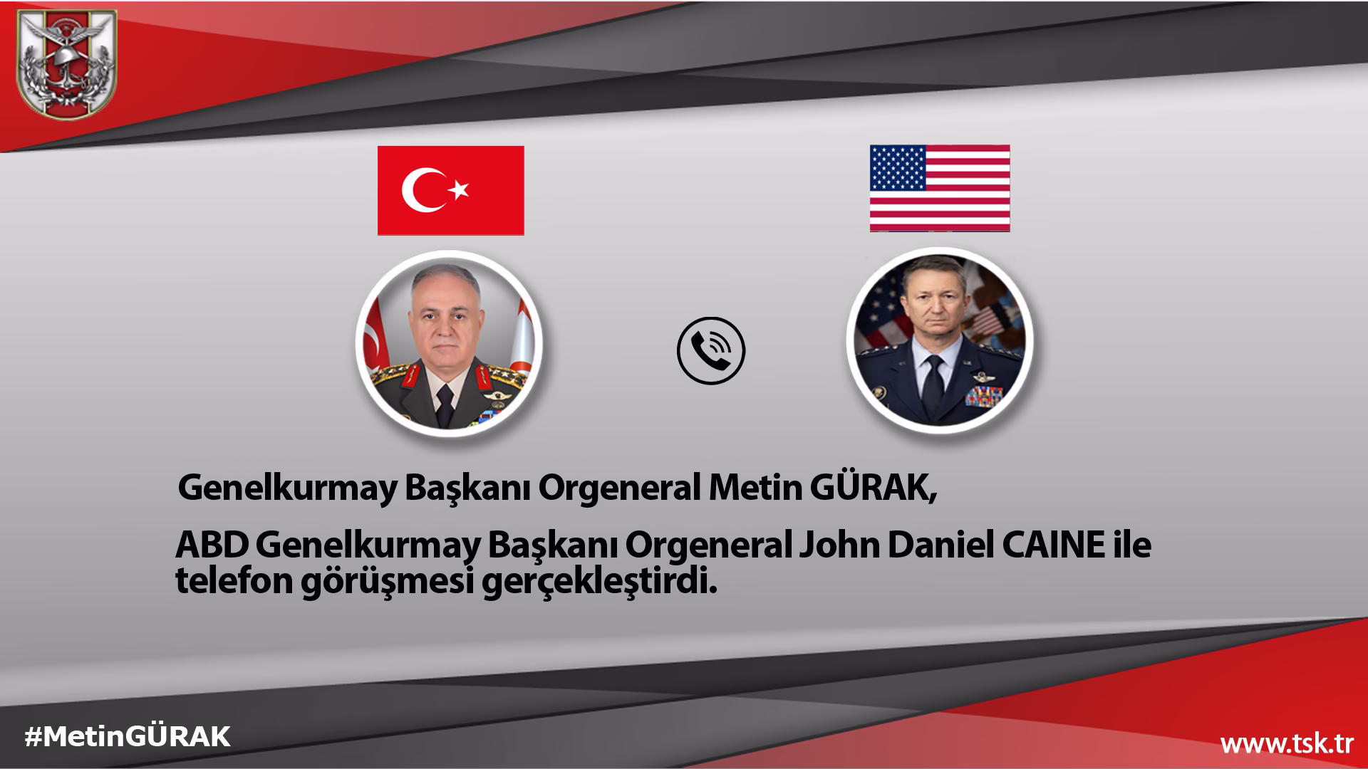 Orgeneral Metin Gürak ile ABD Genelkurmay Başkanı Orgeneral John Daniel Caine arasında yapılan telefon görüşmesinde güncel gelişmeler ele alındı.
