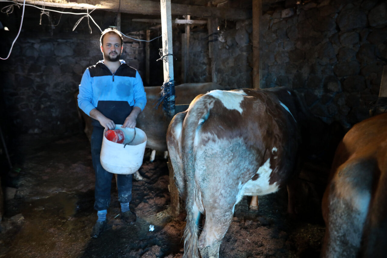 Çocukluktan bu yana hayvanlara merakı ve sevgisinin olduğunu belirten İlkan Turgut, “14 yaşında komşumuzun ineği doğurunca yavrusunu aldım. Onu bakmaya başladım. Büyüttüm ve besledim. Sonra bir tane inek aldım. Daha sonra bir arkadaşım sayesinde 2 tane inek aldım. Böylelikle hayvancılığa başladım. Doğan buzağılara baktım. Sonra yaylacılığa başladım. Burada hem evim hem ahırım var. Burayı kiraladım. Şimdi 15 tane hayvanım var. Çocukluktan beri hayvanları çok seviyorum. Bir yere gezmeye gitsem önce evine değil, ahıra gider bakardım. İnekleri ve buzağıları merak ederim. İlk aldığım buzağı merdiven altında 10-15 gün baktım” diye konuştu.