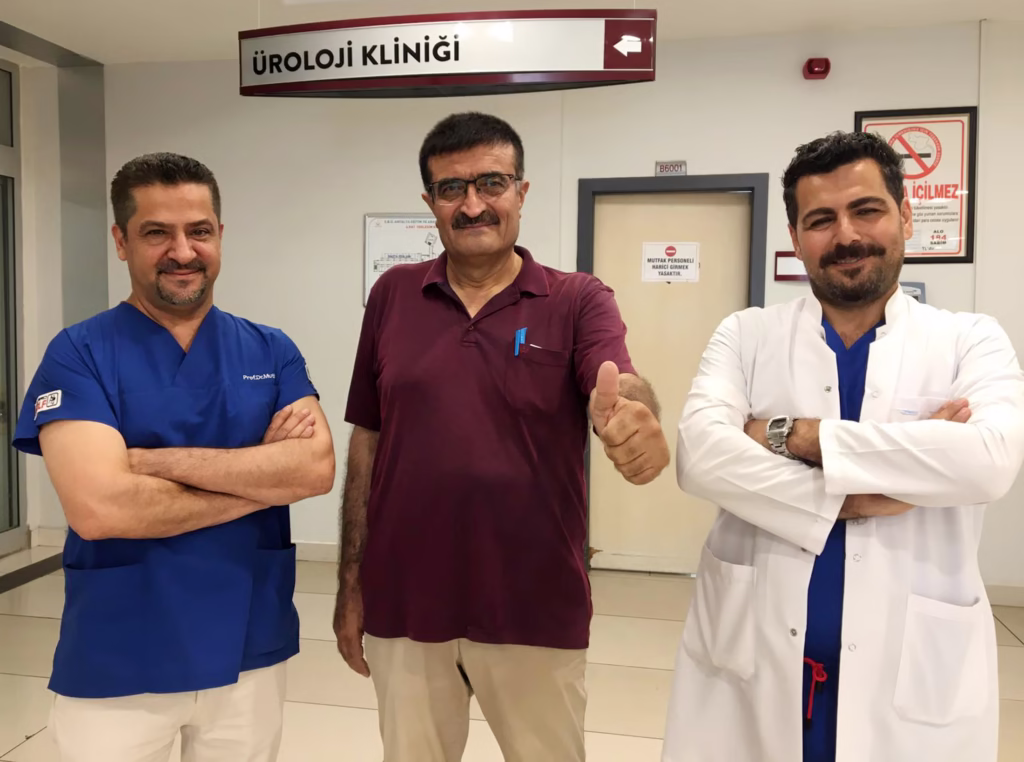 Prostat kanseri ile böbrek üstü bezi kanseri tanısı konulan Sadık Yüksel (62), yaşadığı Ankara’dan gelerek Antalya Eğitim ve Araştırma Hastanesi Üroloji Klinik Sorumlusu Prof. Dr. Mutlu Ateş’e muayene oldu. Prostat kanserinin yanı sıra böbrek üstü bezi tümörünün de belli bir boyutun üzerine çıkması nedeniyle Yüksel’e robotik cerrahi uygulanmasına karar verildi. Sadık Yüksel, 5 saat süren operasyon sonrasında sağlığına kavuştu.