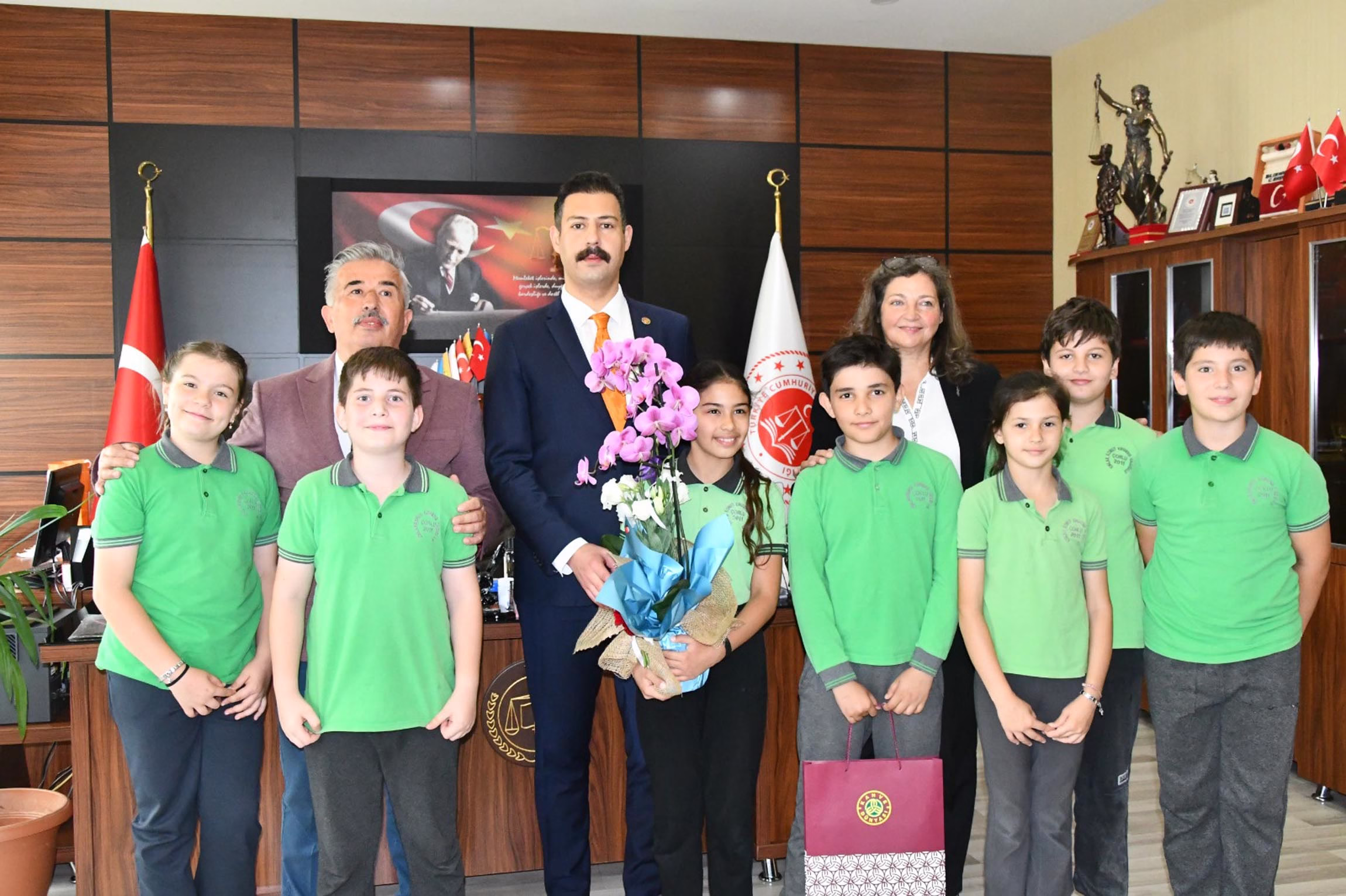 Emlak Konut Ergene Vadisi İlkokulu öğrencileri, Milli Eğitim Bakanlığı’nın ‘Türkiye Yüzyılı Maarif Modeli’ kapsamında Çorlu Adliyesi’ne ziyarette bulundu. Okul müdürü Eyüp Öztürk ile adliyeye gelen öğrenciler, Çorlu Cumhuriyet Başsavcısı Bilgehan Yücel’i makamında ziyaret etti. Başsavcı Yücel, ağırladığı öğrencilerin sorularını yanıtlayıp, “Bugün sizleri adliyemizde ağırlamaktan son derece mutlu olduk. Biz hukuk fakültesini bitirdikten sonra hakim, savcı sınavları var; o sınavlardan geçiyoruz. İki ya da üç yıl staj yapıyoruz, sonra tekrar bir sınava giriyoruz. Bunları başardıktan sonra tayinimizi çıkıyor. Önce savcı çıkıyoruz ve belli bir süre savcılık yaptıktan sonra bizim Hakim Savcılar Kurulumuz var. Orası bizim başarılarımızı, çalışmalarımızı değerlendirip, başsavcı olarak görev verebiliyor. Adliyemizde 30 Cumhuriyet savcımız var. Ben başsavcı olarak ne yapıyorum? 30 savcımız arasında iş bölümü yapıyorum. Burada bir sürü birim var, kimi mahkemelerde duruşma savcılığı yapıyor, kimi cezaeviyle ilgileniyor, kimi memur suçları ile ilgileniyor. Onlarla ilgili görev dağılımı yapıyorum ve savcılarımızın verdiği kararları inceliyorum en son. Bir hata var mı, yok mu gözden kaçabilecek bir şey var mı? Öyle bir şey tespit edersek onu düzeltiyoruz. Ama bu işin özü savcılıktır; başsavcı, biraz da idari görevdir. Her savcı bir başsavcı adayı olabilir” diye konuştu.