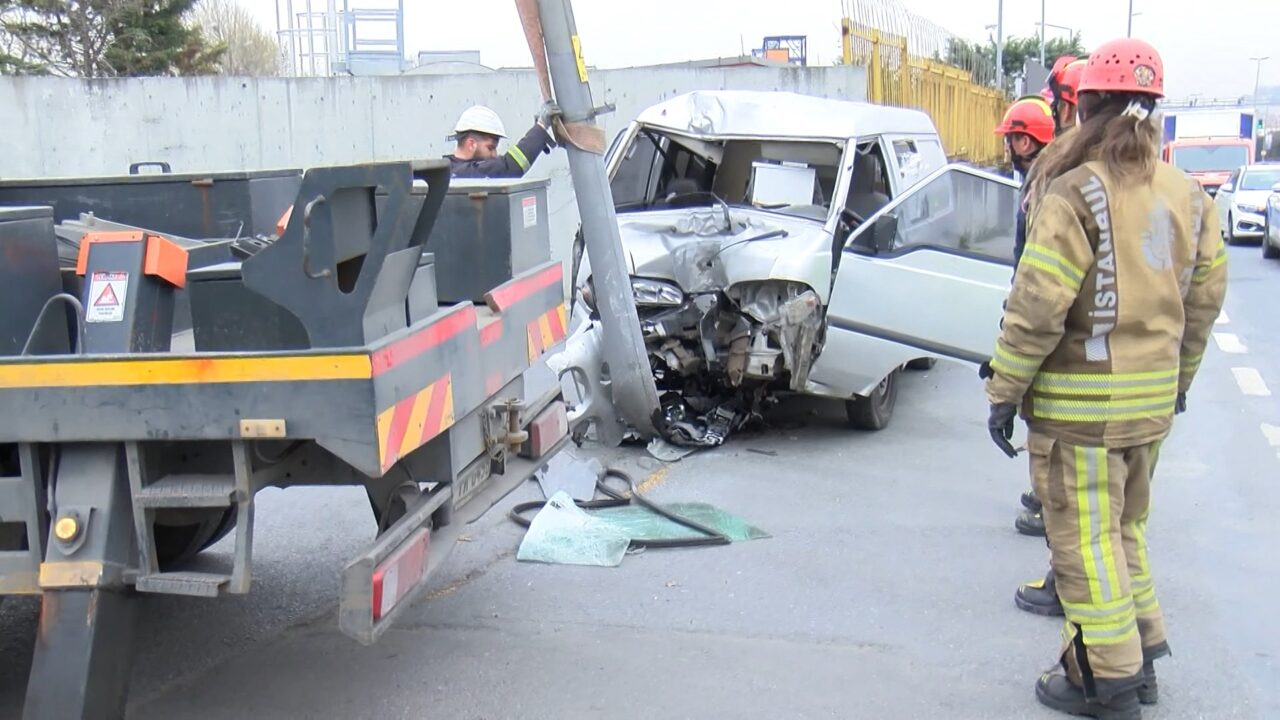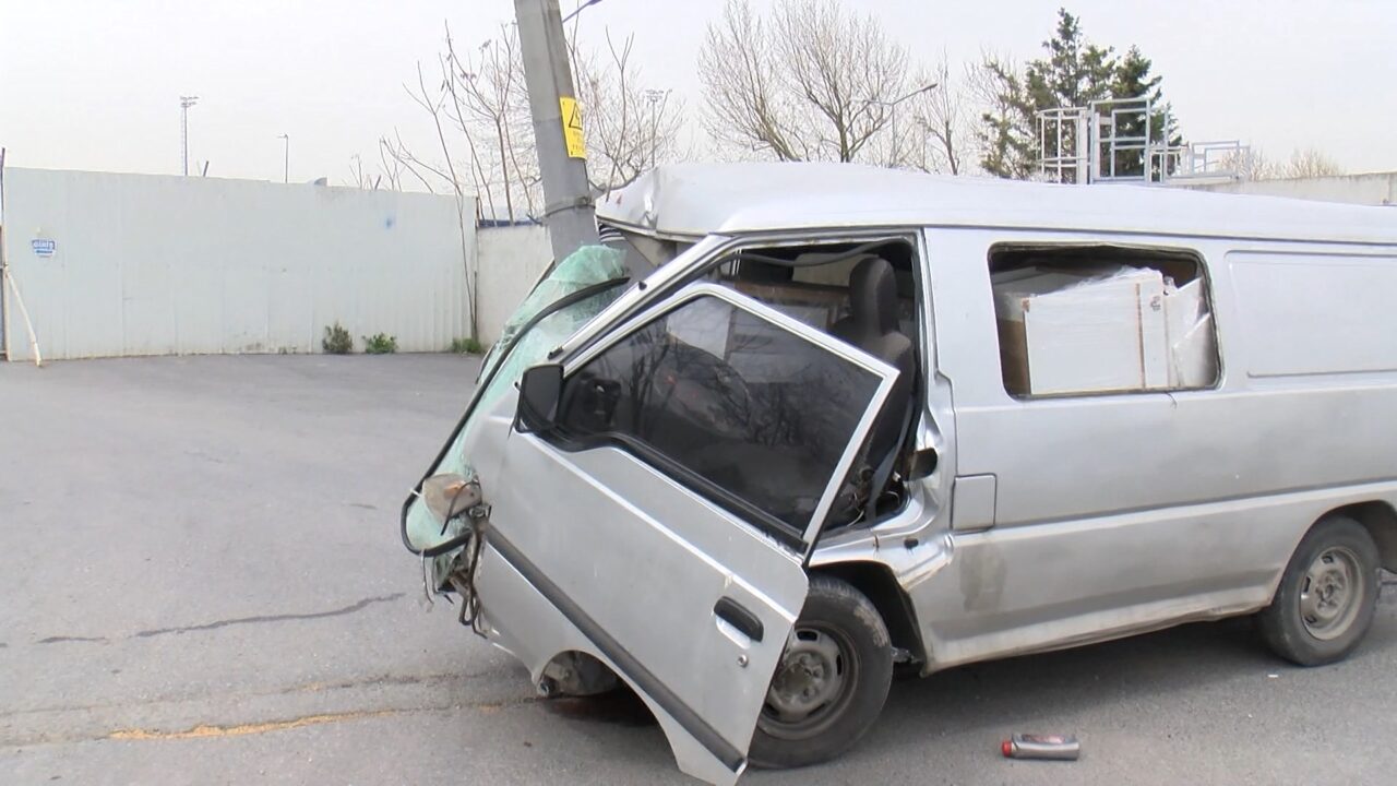 Bakırköy’de sürücüsünün direksiyon hakimiyetini kaybettiği hafif ticari araç aydınlatma direğine çarptı. Devrilen direk aracın altın kalarak metrelerce sürüklendi. Kazada sürücü yaralandı.