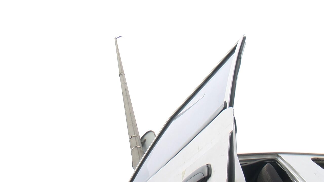 Polis ekipleri de yolda güvenlik önlemi alırken elektrik ve itfaiye ekipleri araçta asılı kalan direği vinç yardımı ile ayırarak indirdi.