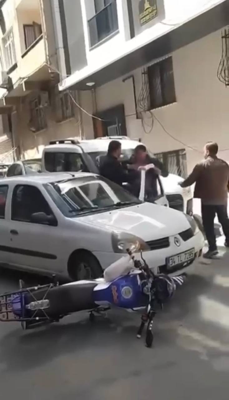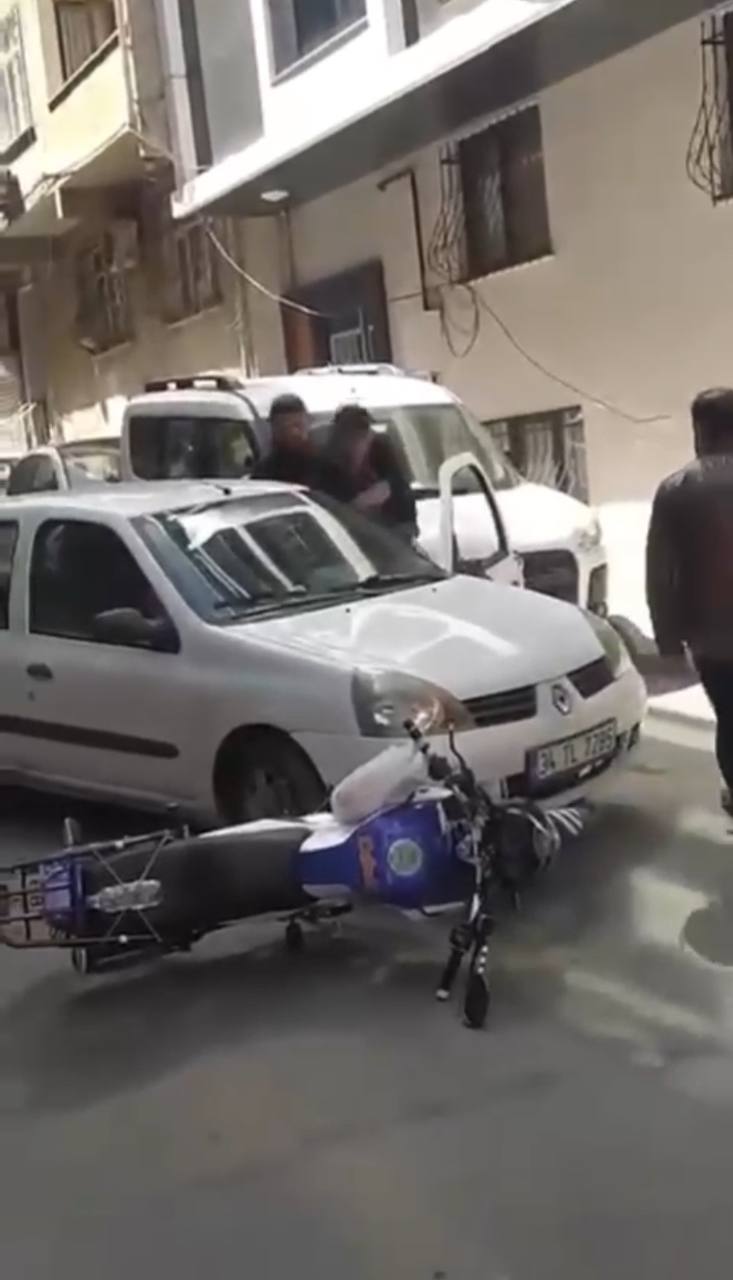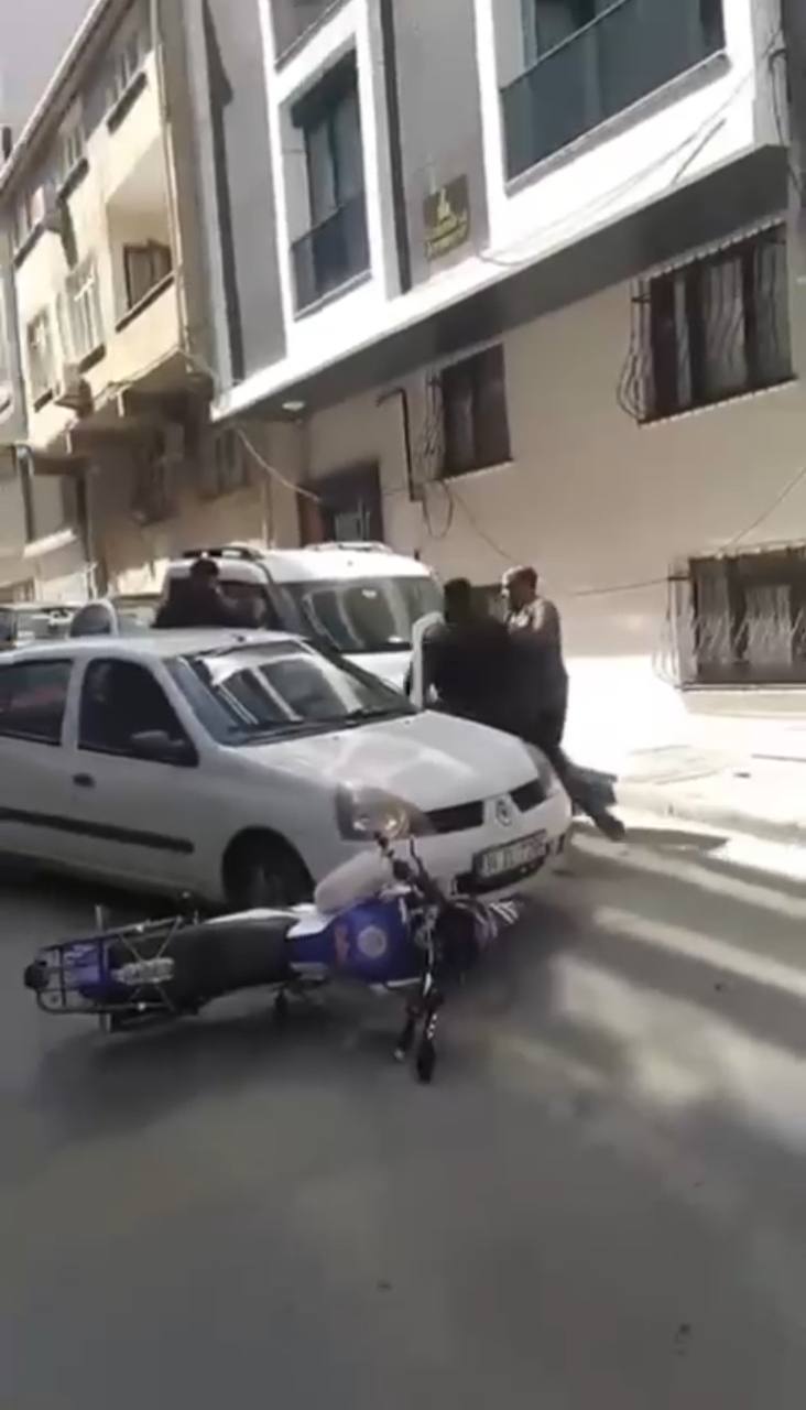 Olay, dün öğle saatlerinde Tuna Mahallesi’nde meydana geldi. İddiaya göre, otomobil sürücüsü yolda ilerlediği sırada motosikletliye arkadan çarparak kaçmaya başladı. Motosiklet sürücüsü, kaçan otomobilin aynasını kırdıktan sonra önüne geçerek durdurdu. Araçtan inen sürücü ile motosikletli arasında kavga çıktı. Mahalle sakinleri kavgayı ayırmaya çalışsa da başarılı olamadı. Otomobil sürücü bagajdan çıkardığı bıçakla motosikletlinin üzerine yürüdü. Çevredekiler kavgayı ayırmaya çalışırken, motosikletli ‘Motosikleti ne hale getirdin, bekle burada’ dedi ve koşarak uzaklaştı. Kavga anı ise cep telefonu kamerasına saniye saniye yansıdı.