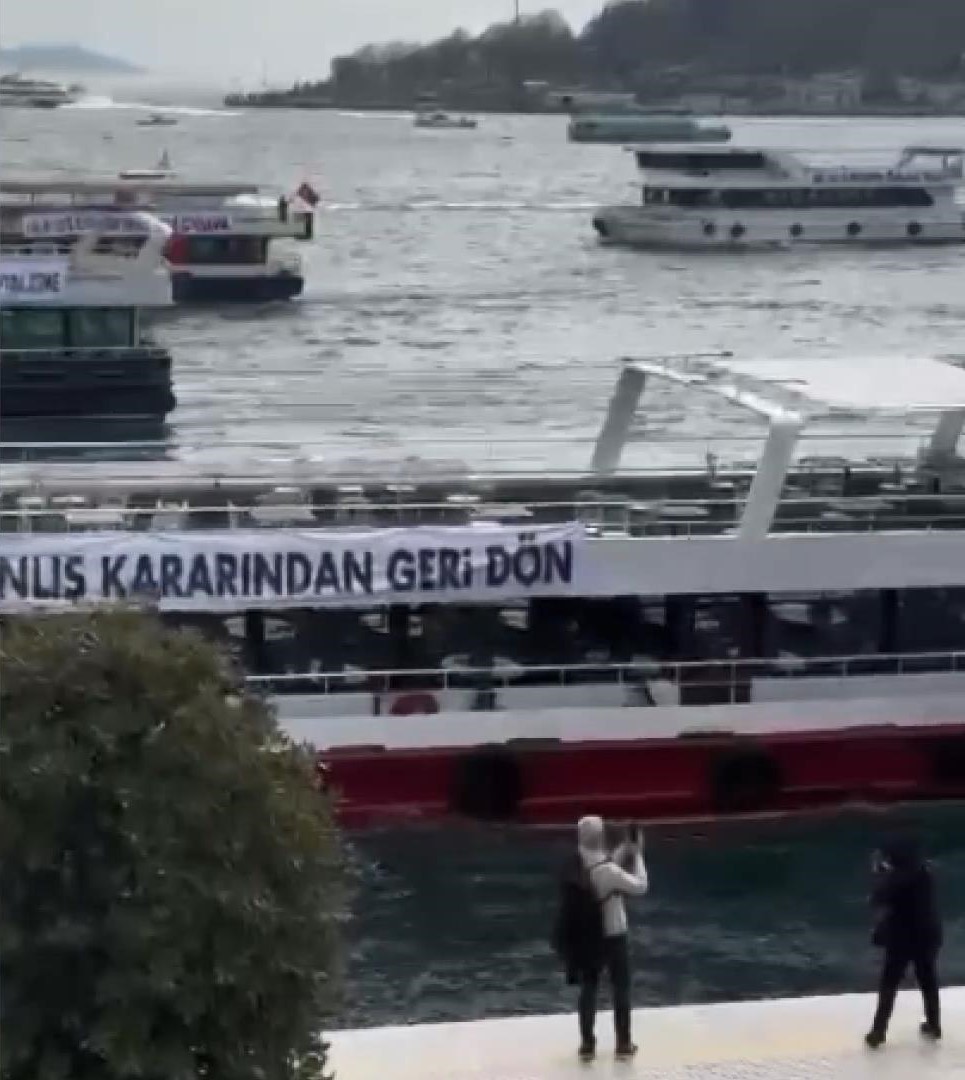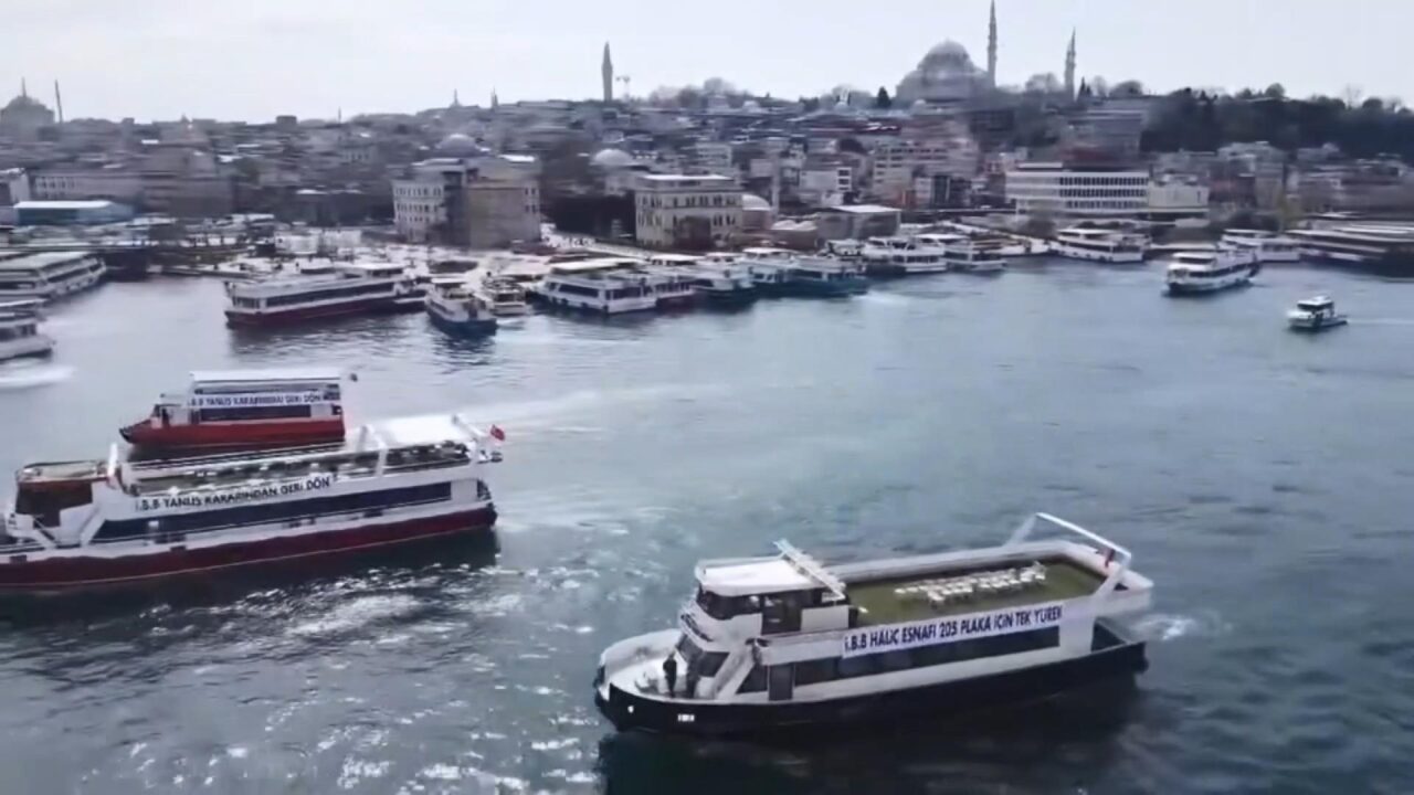 Haliç’te tekne sahiplerinin, UKOME toplantısında görüşülmesini beklediği, 203 adet tekne plakasının iptal edilmesiyle ilgili madde protesto edildi. Hazırladıkları afişleri teknelerine asan esnaf Haliç’e açıldı. 50 tekne sahibi korna çalarak tepkisini dile getirdi. İstanbul Boğazı’na açılan tekne sahiplerinin protestosu dronla havadan da görüntülendi.