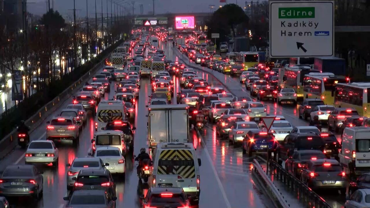 İstanbul’da yağışlı havanın da etkisiyle sabah saatlerinde trafik yoğunluğu oluştu. İstanbul Büyükşehir Belediyesi Trafik Yoğunluğu Haritası verilerine göre saat 09:00 itibarıyla yoğunluk Anadolu yakasında yüzde 89 İstanbul genelinde ise yüzde 80’e ulaştı. Kentteki ana arterlerde trafik durma noktasına geldi. Kadıköy D-100 Karayolu’nda araçların güçlükle ilerlediği görüldü.