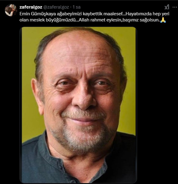 Oyuncu Emin Gümüşkaya 77 yaşında hayatını kaybetti. Vefat haberini oyuncu Zafer Algöz sosyal medya hesabından duyurdu.