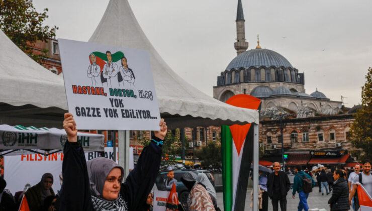 İHH’nın öncülüğünde düzenlenen eylemde, Sumud ve Özgürlük Filoları’na destek için Gazze’ye insani yardım çağrısı yapıldı; Pazar günü büyük yürüyüş planlanıyor.
