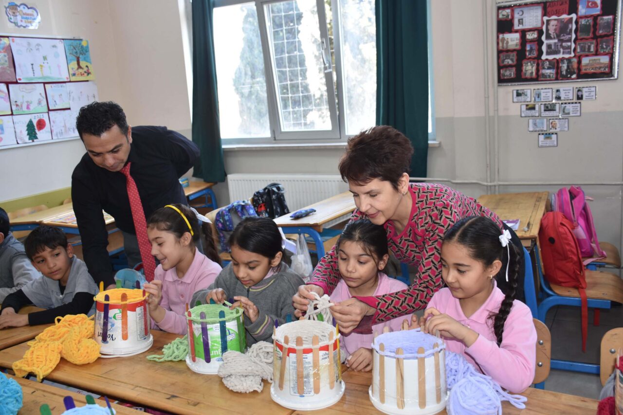 Öğrencilerden Dersu Altun (7) ise “Çok heyecanlandım. Sadece örgü örmedim, içine sevgimi de kattım. Tamamladığımda çok mutlu oldum. Birisi benim ördüğüm atkıyı takacağı için çok seviniyorum” dedi.