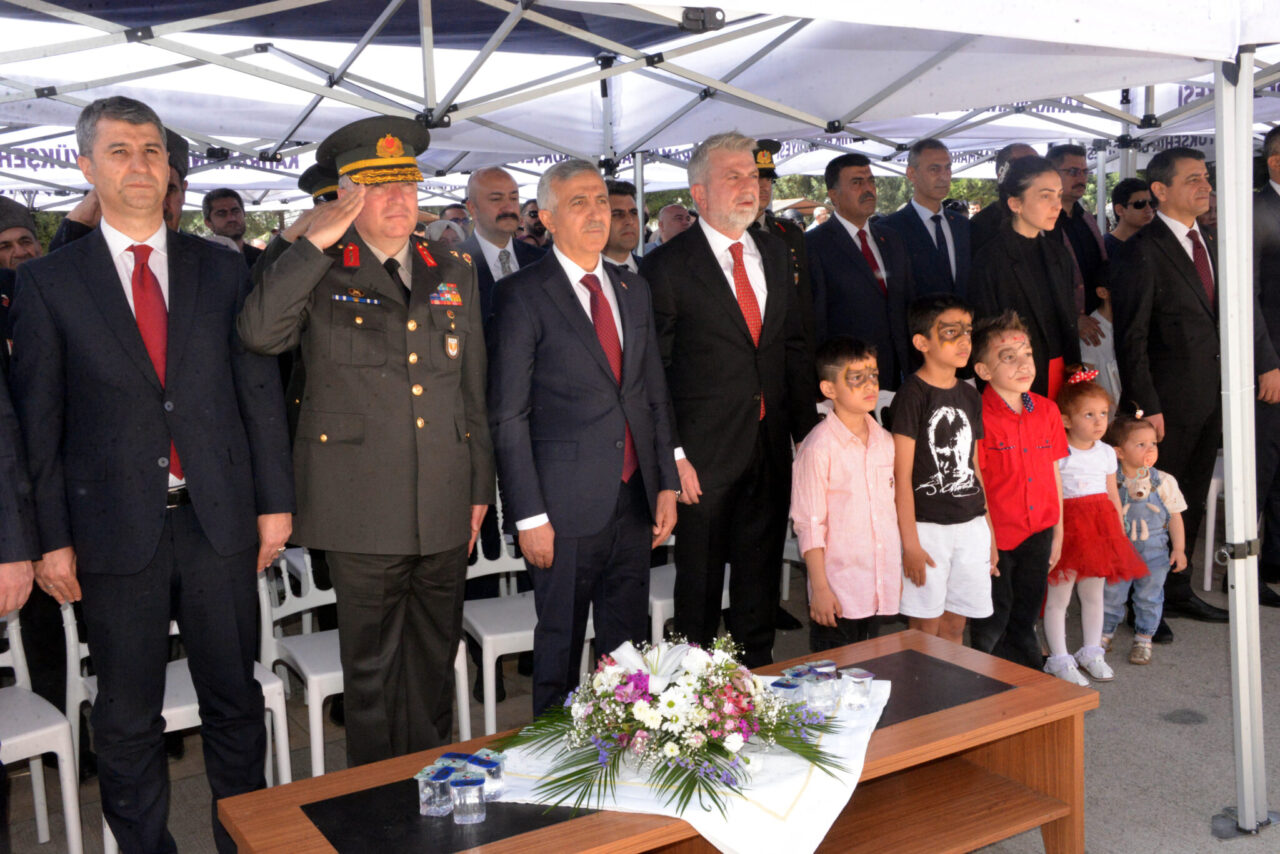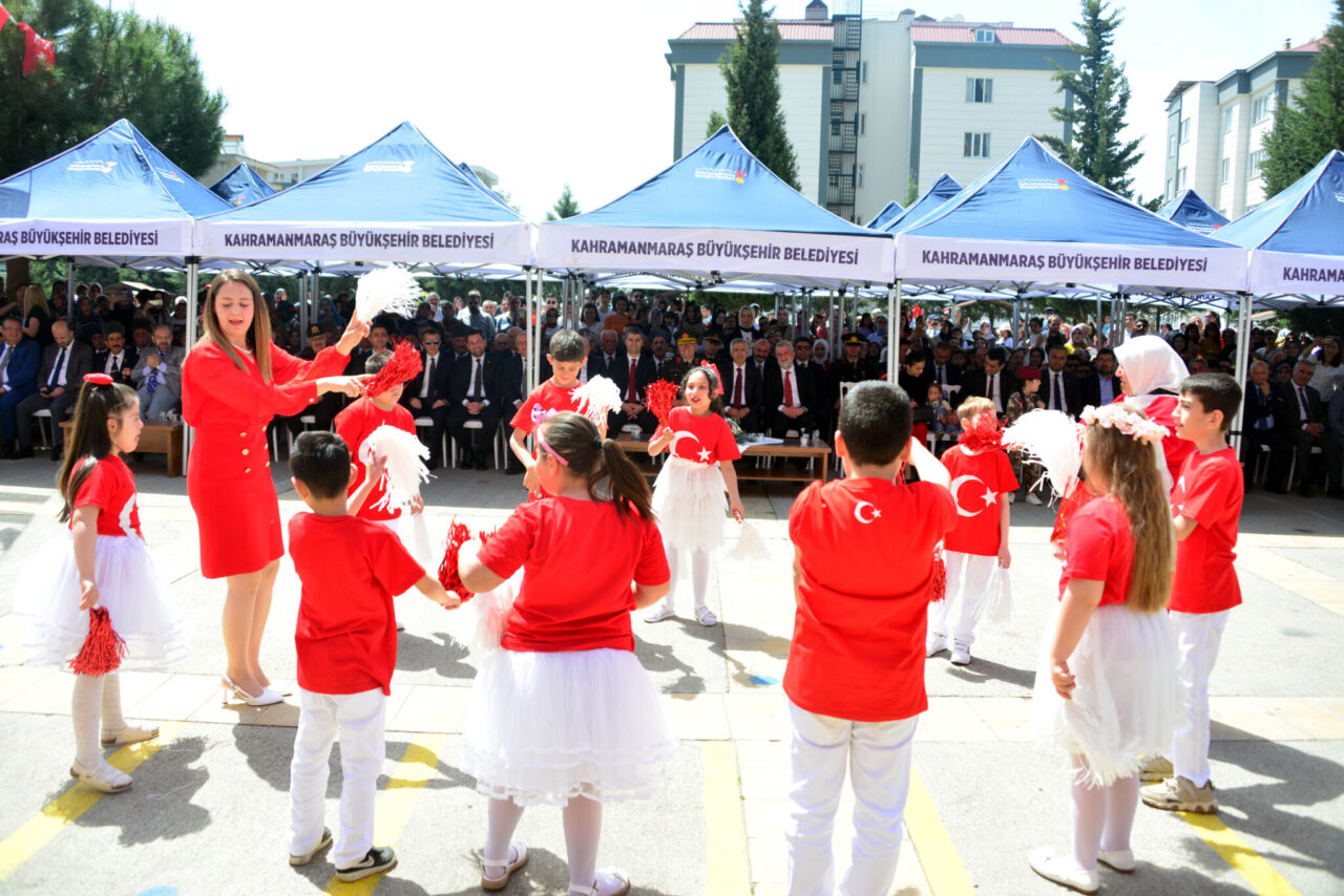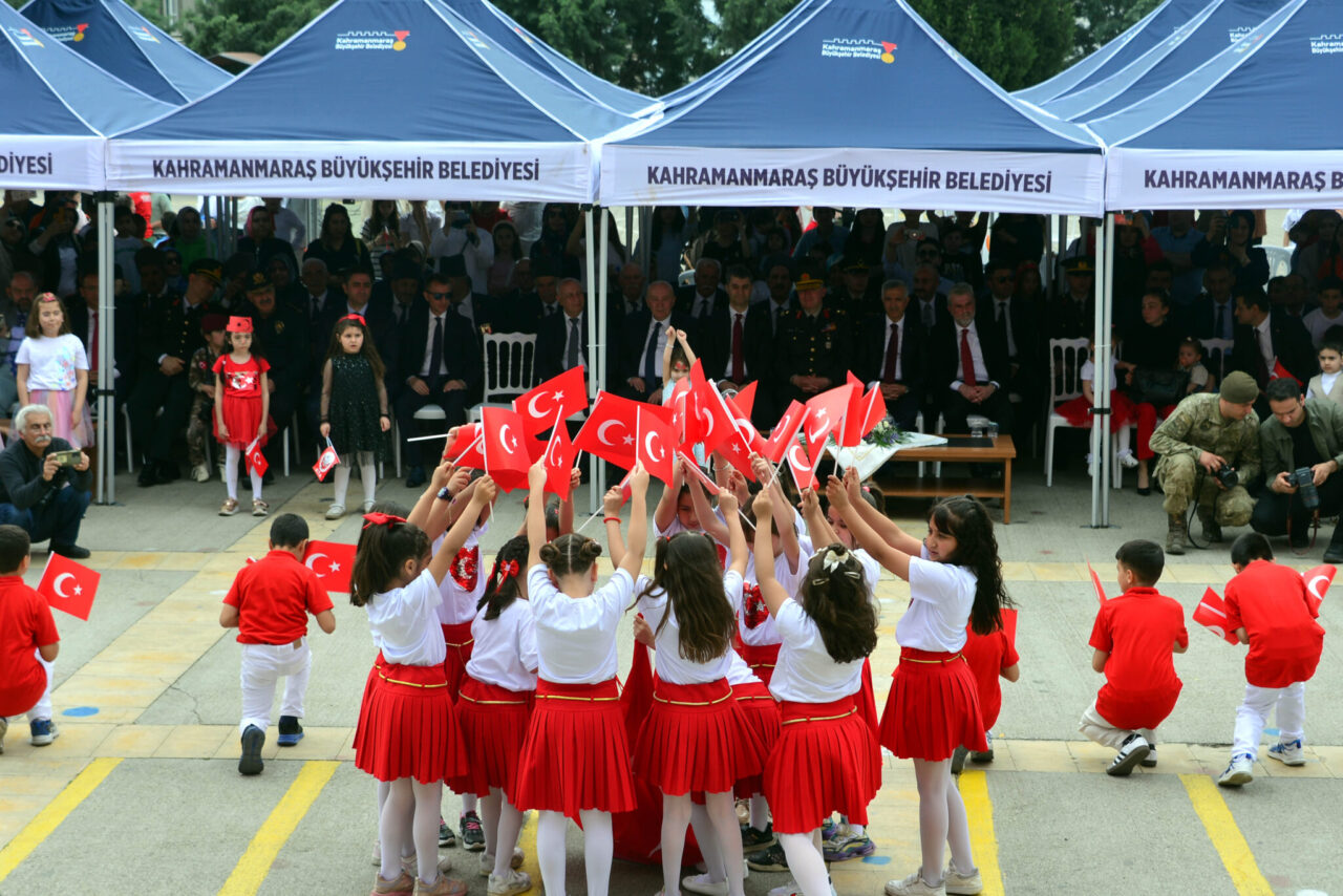 23 Nisan Ulusal Egemenlik ve Çocuk Bayramı dolayısıyla eski Kahramanmaraş Valiliği bahçesindeki Atatürk Anıtı’nda tören düzenledi. İl Milli Eğitim Müdürü Erhan Baydur’un Atatürk Anıtı’na çelenk konulmasının ardından İstiklal Marşı okundu. Törene katılanlar daha sonra MADO Kadriye Kanbur İlkokulu’ndaki kutlama programına geçti. Kahramanmaraş Valisi Mükerrem Ünlüer, Garnizon Komutanı Tuğgeneral Tolga Genç, Kahramanmaraş Büyükşehir Belediye Başkanı Fırat Görgel, daire amirleri ile veli ve çocukların katıldığı program, saygı duruşunda bulunulması ve İstiklal Marşı’nın okunmasıyla başladı. Programın açılış konuşmasını yapan İl Milli Eğitim Müdürü Baydur, Kahramanmaraş’ın milli mücadelenin Anadolu’da yükselen sesi olduğunu ve bu mücadeleye katılanların emanet bıraktığı topraklarda çocukların yarınlara yürüyebilmesi için eğitim camiası olarak sorumluluklarının farkında olduğunu söyledi. Erhan Baydur, “Bu anlamlı günde başta Gazi Mustafa Kemal Atatürk olmak üzere vatanımız için canlarını feda eden aziz şehitlerimizi rahmet, minnet ve saygıyla anıyorum. Aynı zamanda dünyanın dört bir yanındaki mazlum Filistin halkının çektiği derin acıları yüreğimizde hissediyoruz. Mazlum çocuklar başta olmak üzere hayatını kaybeden tüm kardeşlerimizi rahmetle yad ediyor, Filistin’de süregelen zulmün bir an önce son bulmasını oradaki çocuklarımızın da barış ve güven içinde çocuk bayramını sevinçle yaşayabileceği günlerin yakın olmasını diliyorum” diye konuştu.