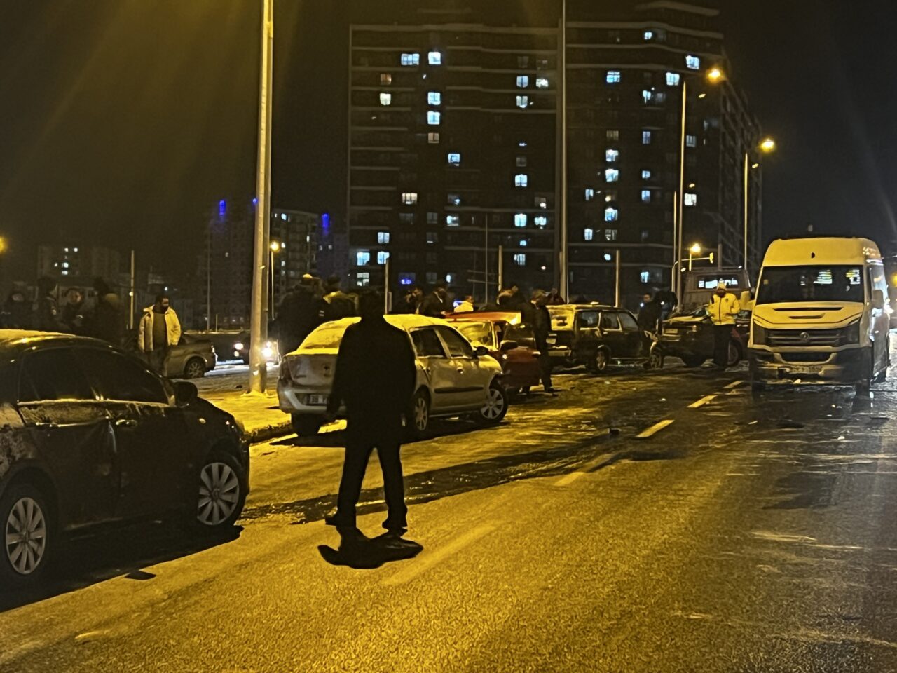Kaza, saat 23.00 sıralarında Gesi Fatih Mahallesi Gesi Caddesi’nde meydana geldi. Kar yağışının ardından buz tutan zeminde 11 araç zincirleme kazaya karıştı. Kazada 2 kişi yaralanırken, ihbar üzerine bölgeye polis, sağlık ve itfaiye ekipleri sevk edildi. Yaralılar, sağlık ekiplerince hastaneye kaldırıldı. Kaza sonrası yol trafiğe kapandı. Ekiplerin araçları kaldırma çalışmaları sürüyor. (DHA)