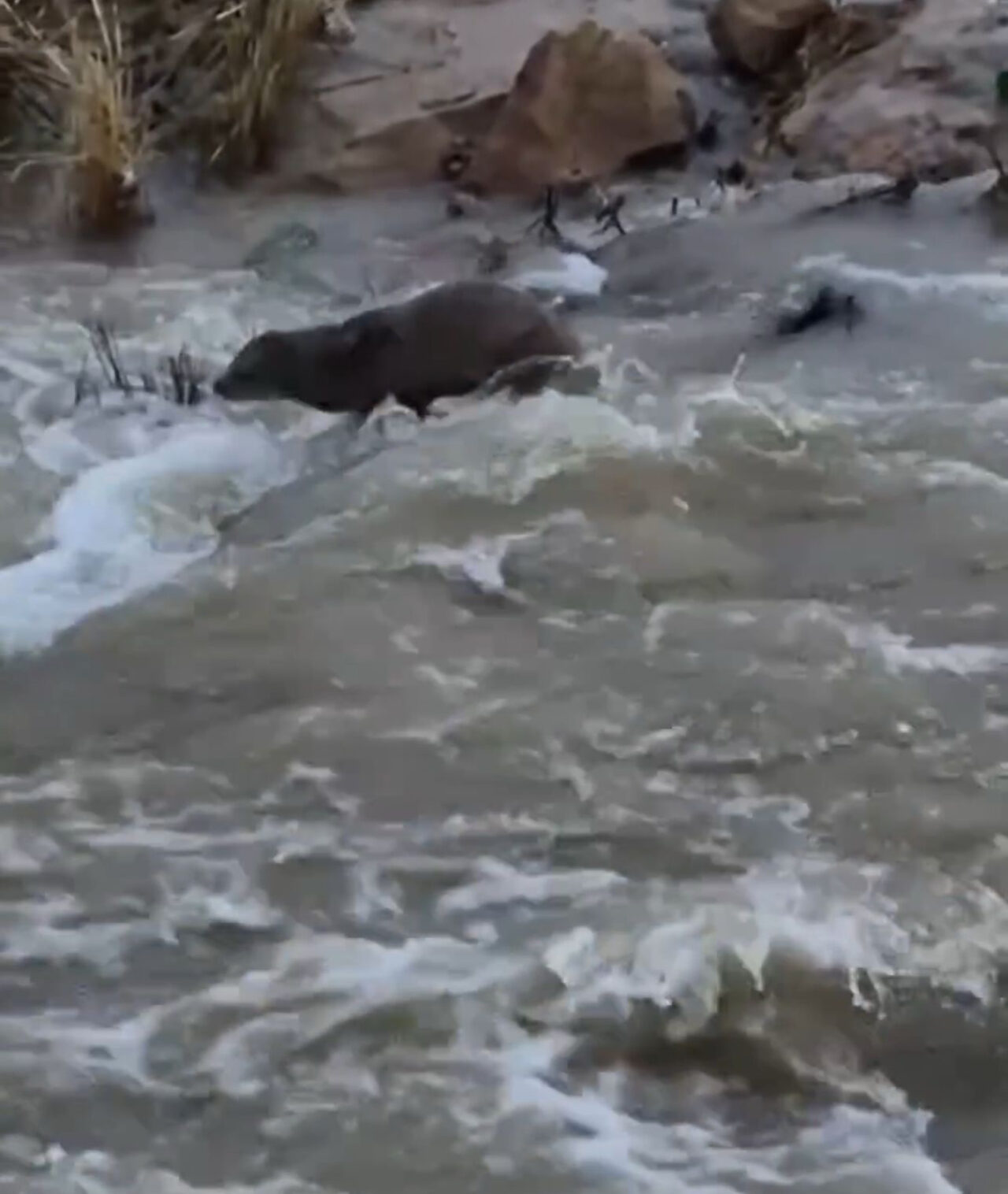 İmranlı ilçesinden doğup Bafra üzerinden Karadeniz’e dökülen Türkiye’nin en uzun nehri olan Kızılırmak’ta nesli tehlike altında bulunan su samuru görüldü. Kardeşler Mahallesi, tarihi Eğri Köprü bölgesinde Dünya Doğa ve Doğal Kaynakları Koruma Birliği (IUCN) tarafından ‘Nesli tükenme tehdidine yakın’ kategorisinde sınıflandırılan su samurunu çevredekiler fark etti. Nehir üzerinde yüzen ve balık avlamaya çalıştığı gözlenen su samurunu çevredekiler cep telefonuyla kaydetti. Su samuru bir süre sonra suya girerek gözden kayboldu. (DHA)