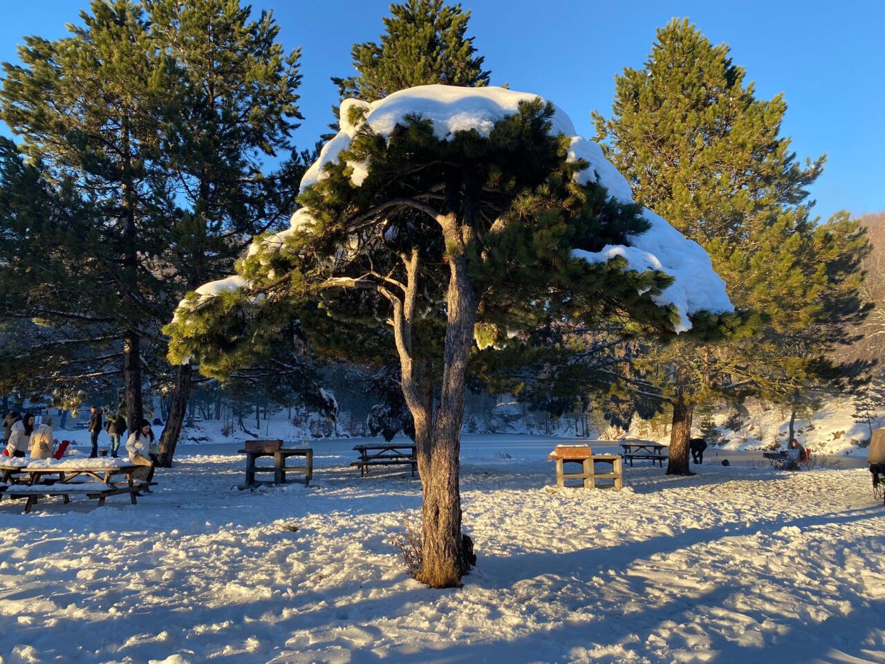 Domaniç Belediyesi Tabiat Parkı yoğun ziyaretlerle dolarken, aileler ve çocukları kartopu oynayarak, gönüllerince eğlendi.
